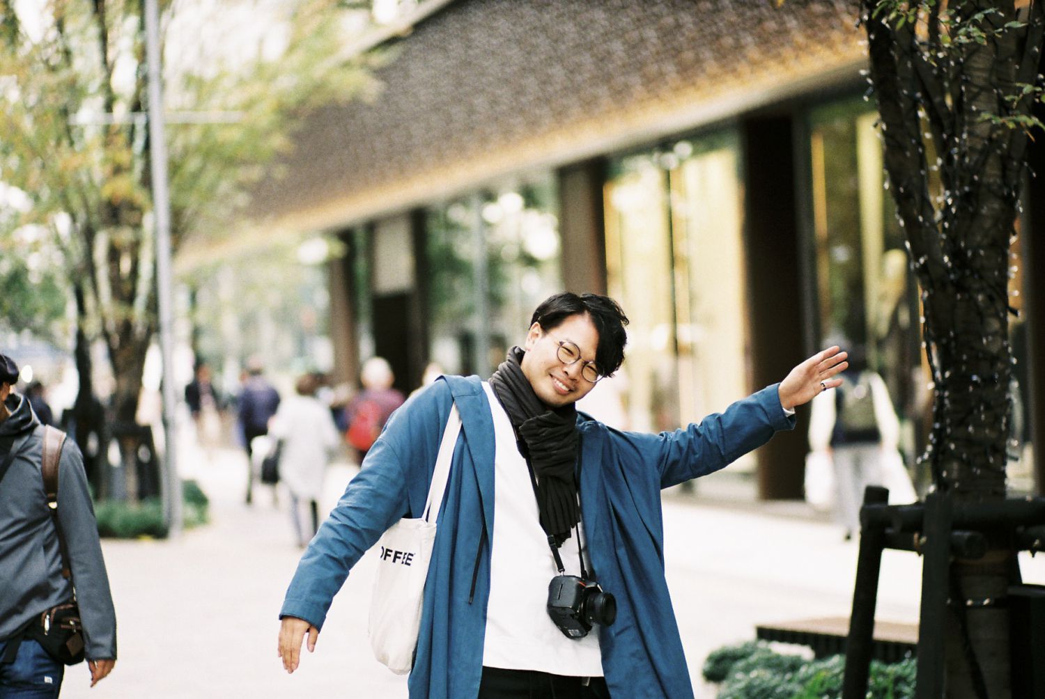 ちなみにこの日の服装はこんな感じ。買ったばかりのDAKSのブルゾンにJANTJE_ONTEMBAARのコートを羽織りました。カメラはLeica M6です。1本目はFUJIFILM 業務用100を使います。