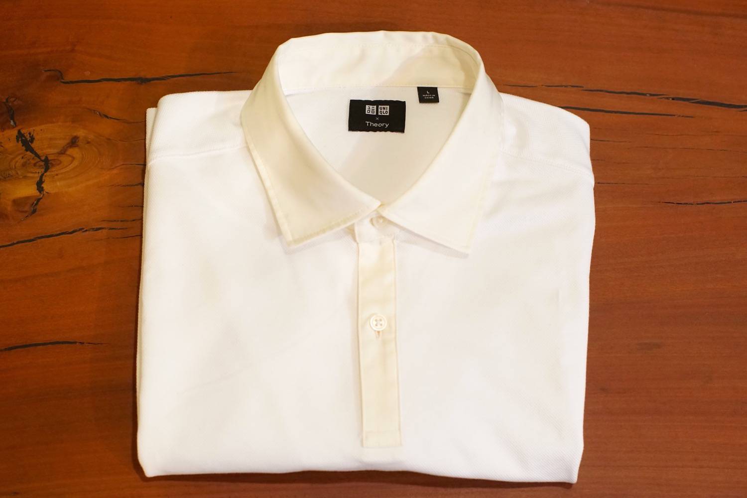 購入したのはUNIQLO×Theoryのクレリックポロ。カラバリは4色展開でホワイト×オフホワイトを選びました。