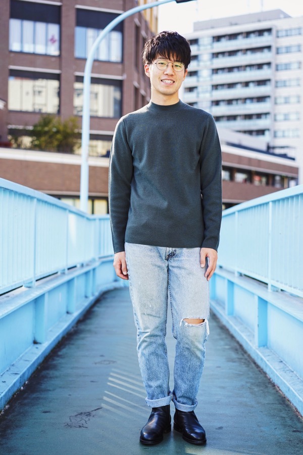 キレイめ=ハイゲージニットかなということで先日購入したばかりのUNIQLO U(ユニクロ ユー)のモックネックニットで合わせてみました。