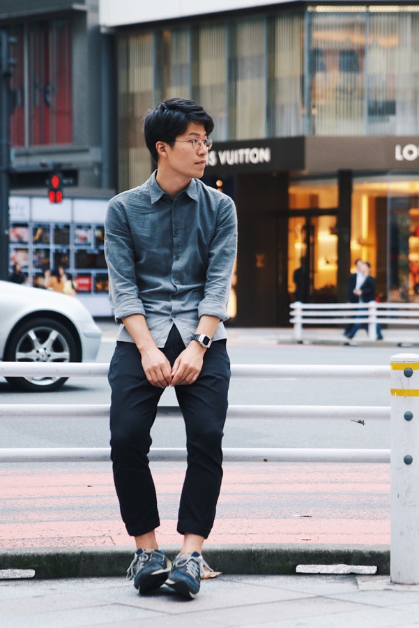 長袖でも暑さを感じない気温だったこの日は、やや起毛感のあるMELINDA GLOSSのグラデーションシャツを久しぶりに着用。