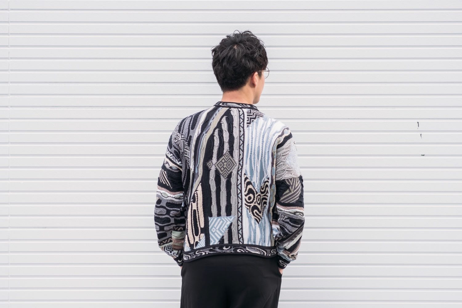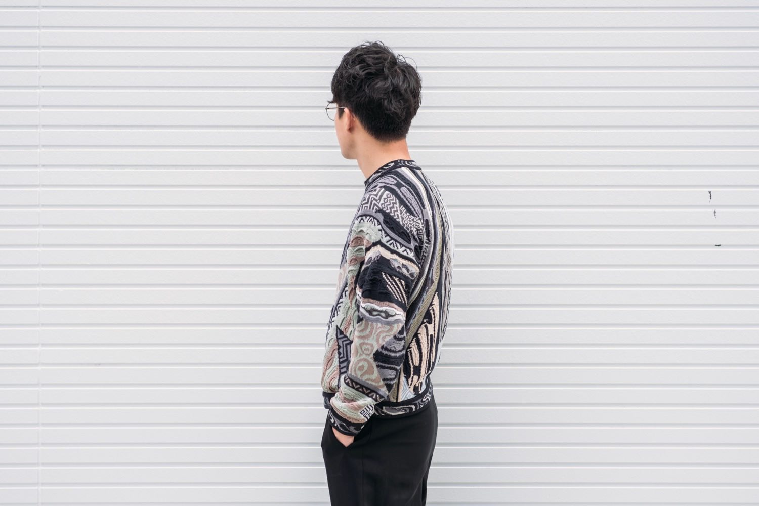今日は先日高円寺の古着屋chartで購入した、COOGI(クージー)のニットを着ることを中心に考えてコーディネート。派手柄のニットなのであとのアイテムは黒でまとめてメリハリをつけました。