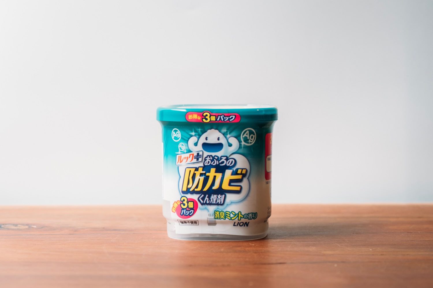 「ルック おふろの防カビくん煙剤」は、風呂場のバルサンみたいな商品。水を入れて缶を入れるとくん煙剤が噴射され、浴室のカビ発生を抑えてくれる効果があります。