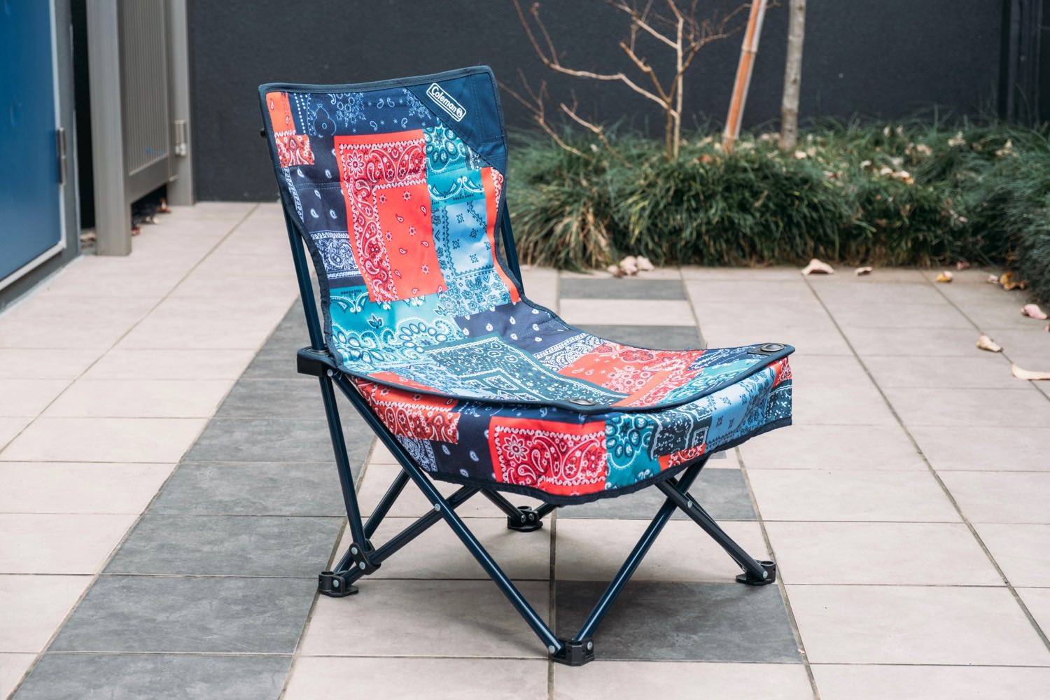 BEAMS別注のバンダナ柄で部屋に置いて違和感のないデザインも気に入っています。数千円で購入できるアウトドアチェアならではの手軽さも魅力。
