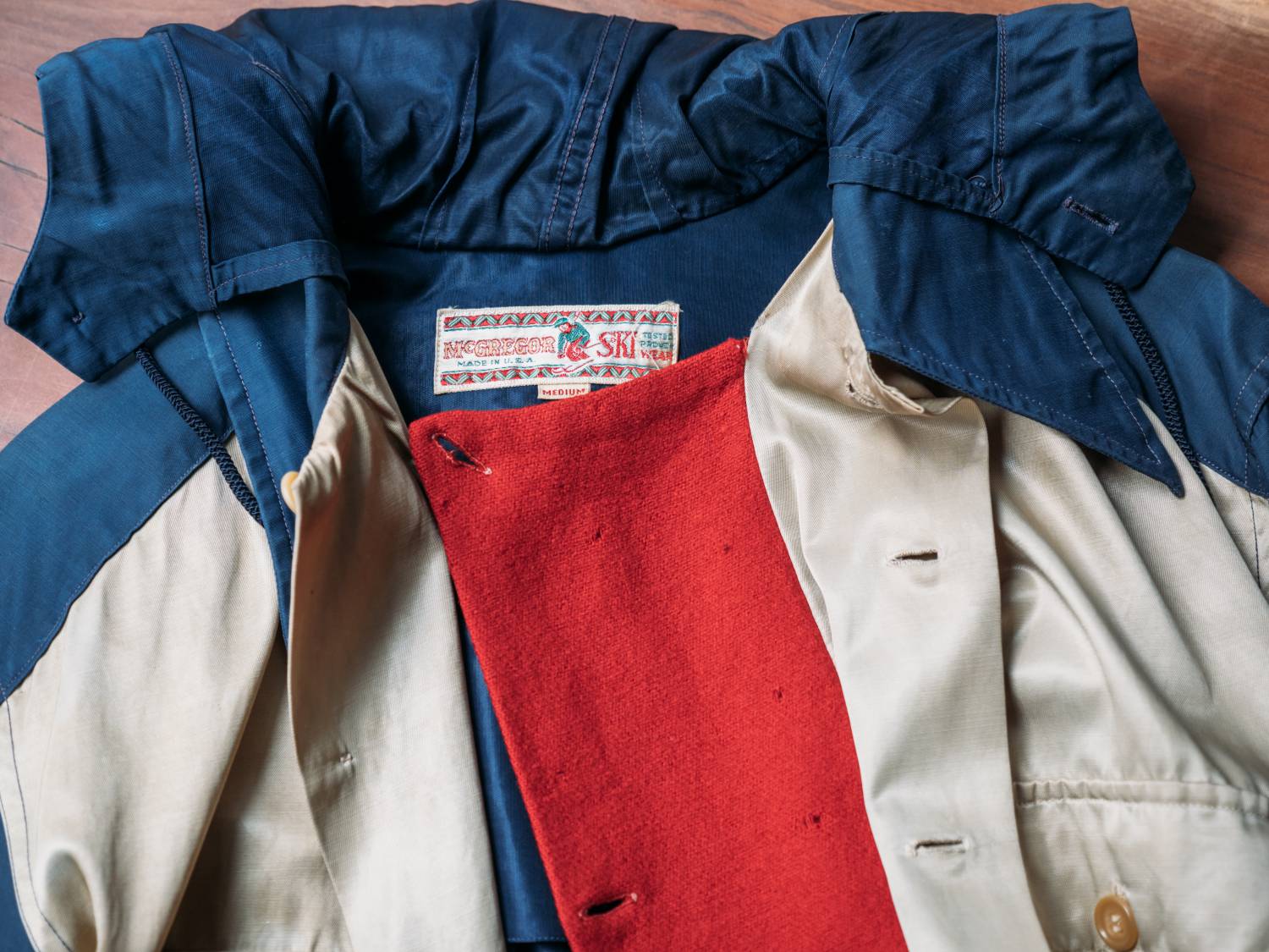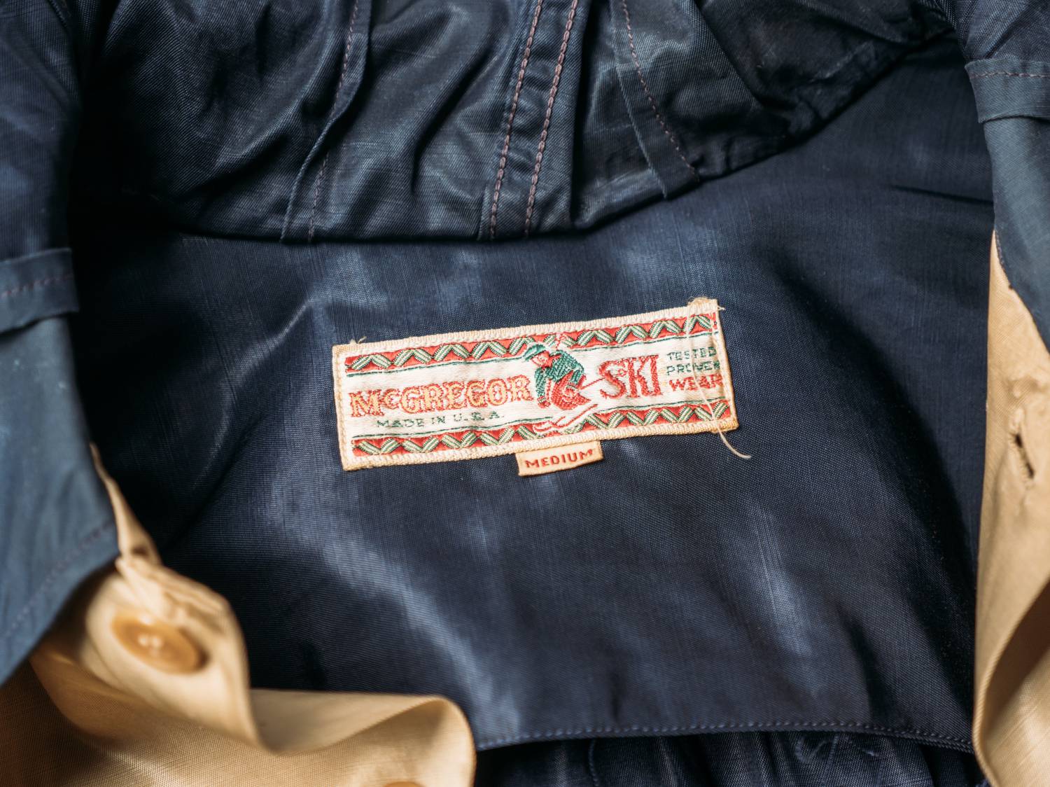 この服は元々スキーウェアとして作られたものだそうで、ブランドタグにも「SKI WEAR」という文字と、スキーをしている人のイラストが。