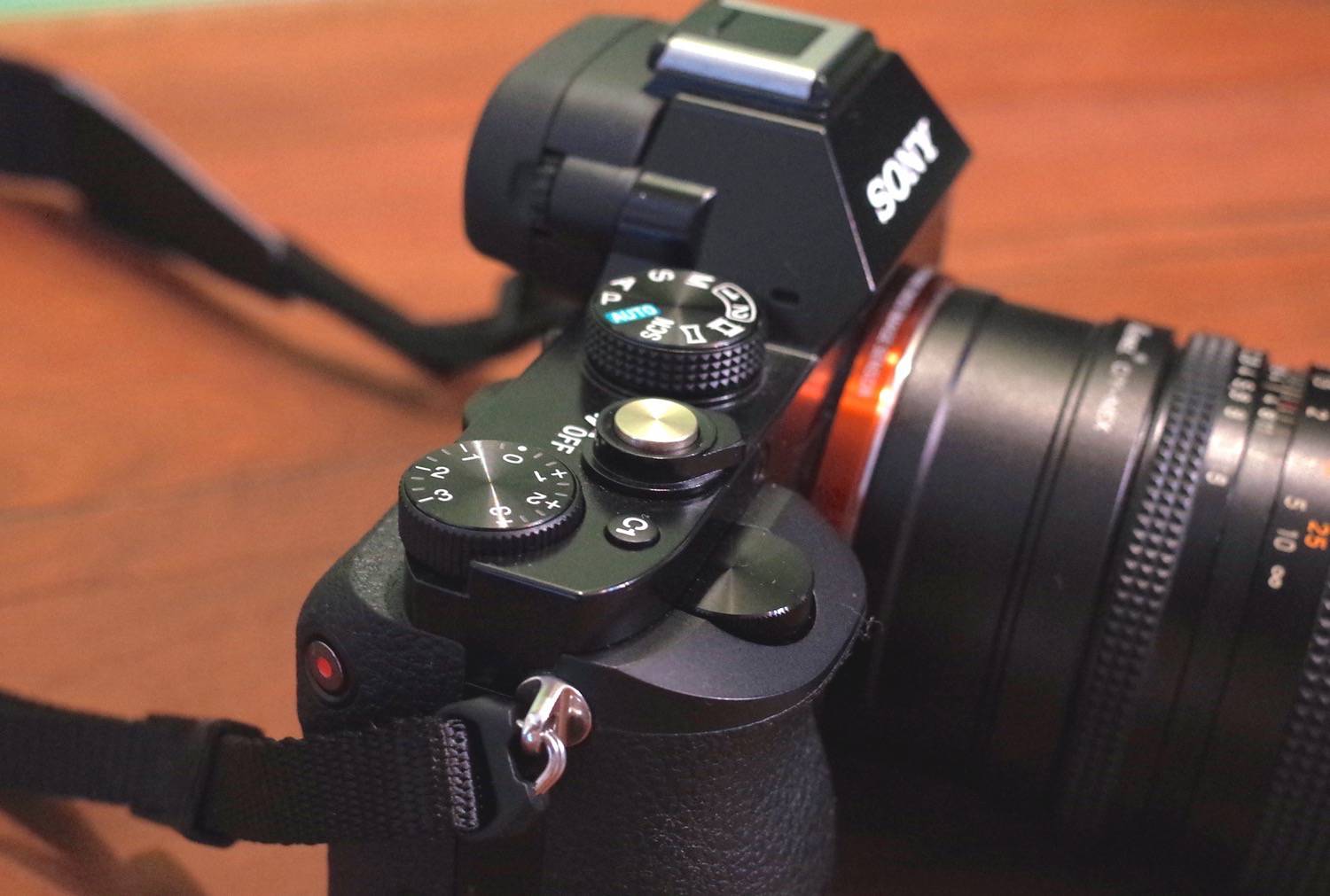 まず不満を感じるのがα7のシャッター位置。写真の通り軍艦部にあるんですがここがどうにも押しにくい。