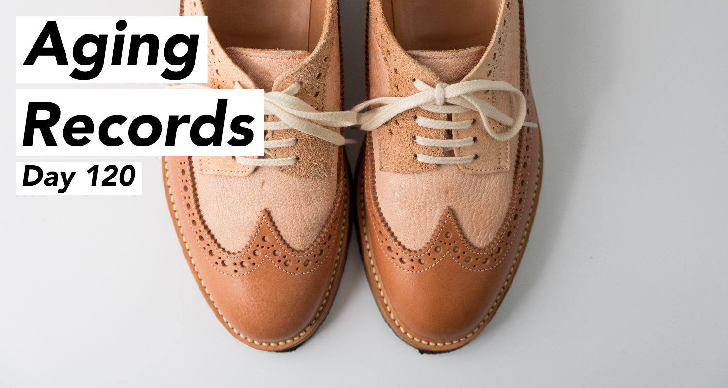 アッパーがヌメ革でできた「Hender Scheme(エンダースキーマ)」のウイングチップシューズ購入をきっかけに、新品状態からエイジングの様子を定点観測していこうという連載企画「Aging Records」