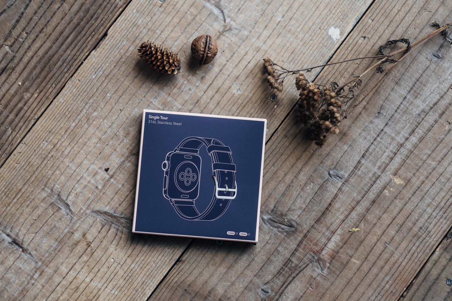 サードパーティ製の交換バンドの割に外箱は意外とおしゃれ。エルメス純正バンドを意識してか“Single Tour(シングルトゥール)”と書かれています。