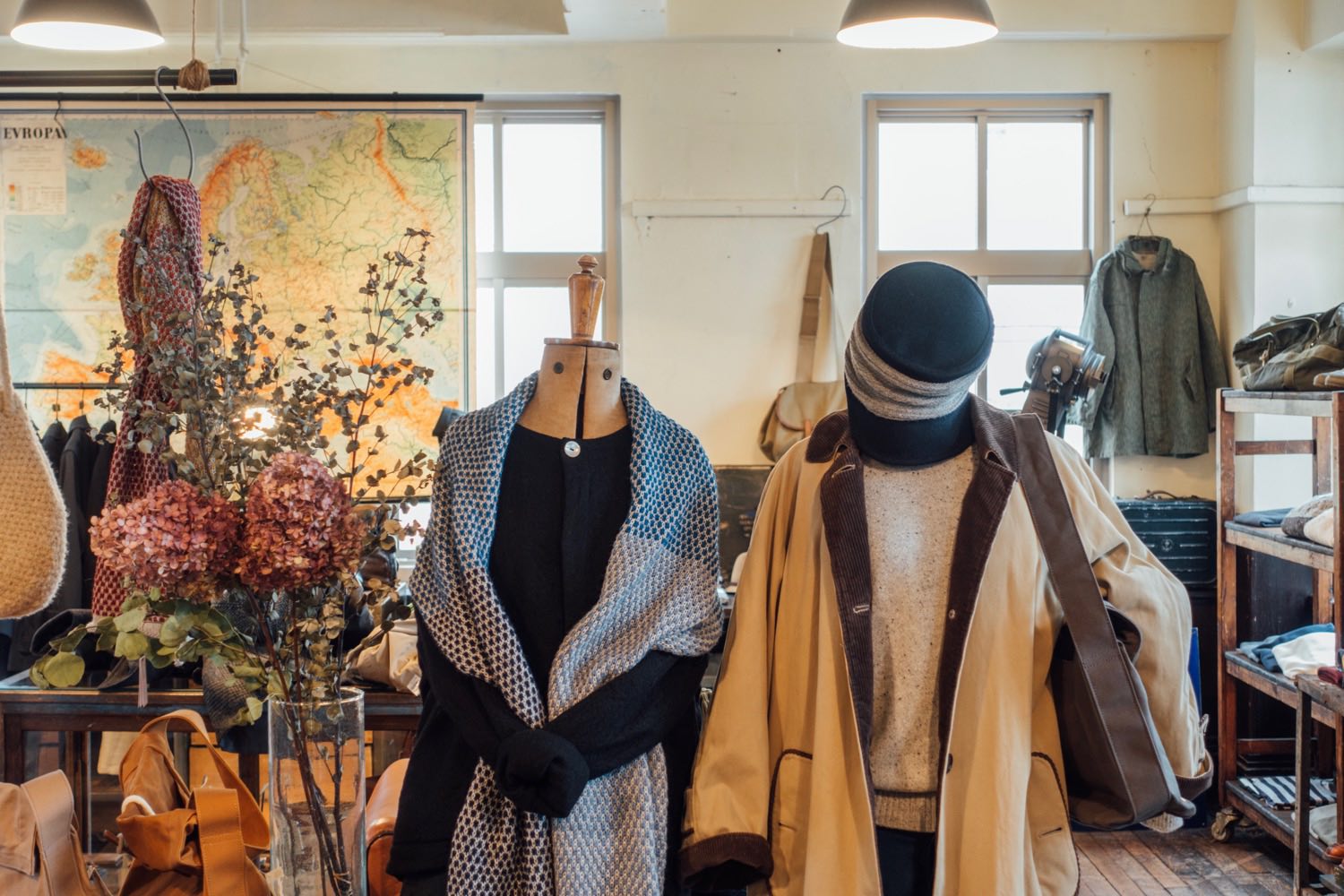 取り扱う古着はフランス、ベルギー、イングランド、ドイツなどから仕入れたものが中心。緩くて丸さのある、アースカラーを中心とした柔らかいテイストです。
