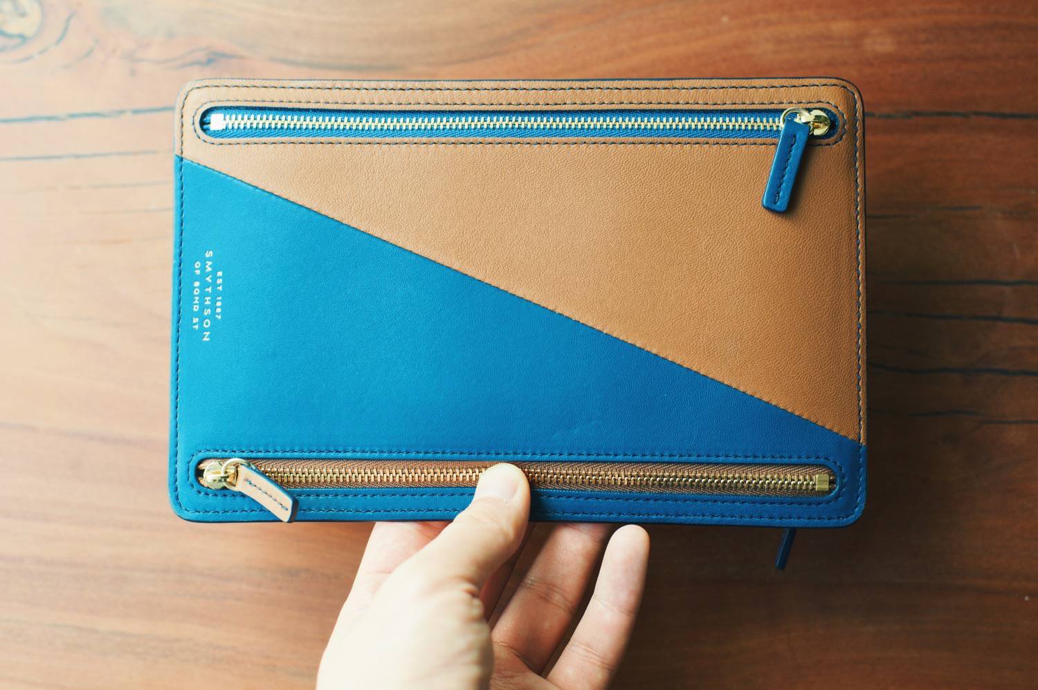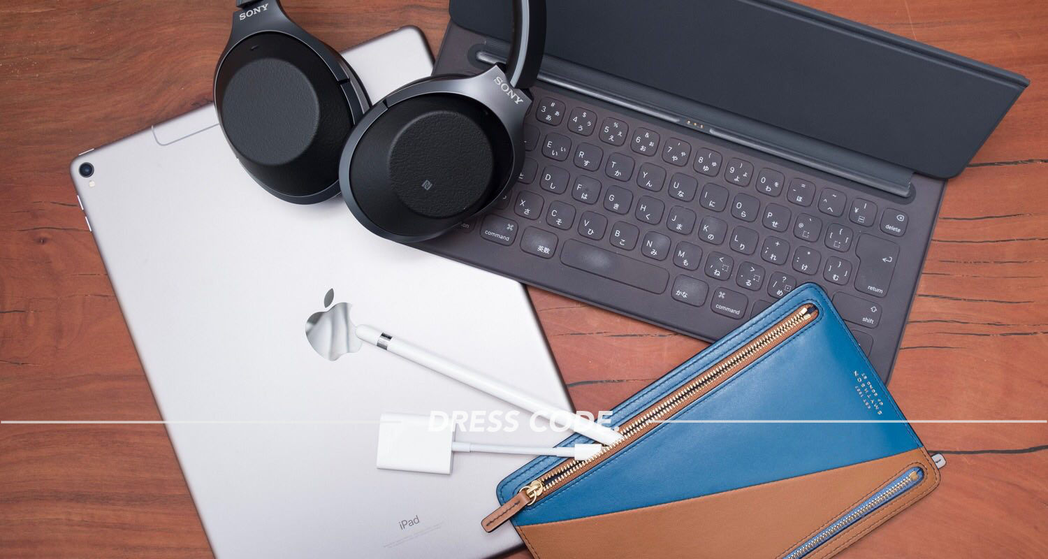 iPad Proと一緒に使う周辺機器類はまとめてSMYTHSONのレザーケースにいれて持ち運んでいます。薄いケースですが両面左右に合計4つのポケットがあり、細々したものを分けて収納するのに便利。