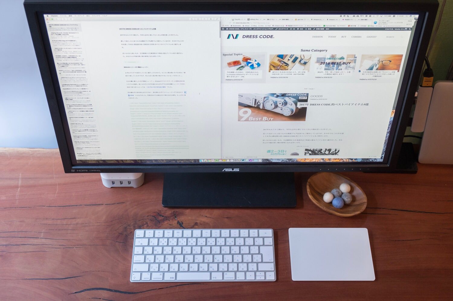 使用時はクラムシェルモードでASUSの27インチ4Kディスプレイに接続。キーボードとトラックパッドはApple純正を使っています。
