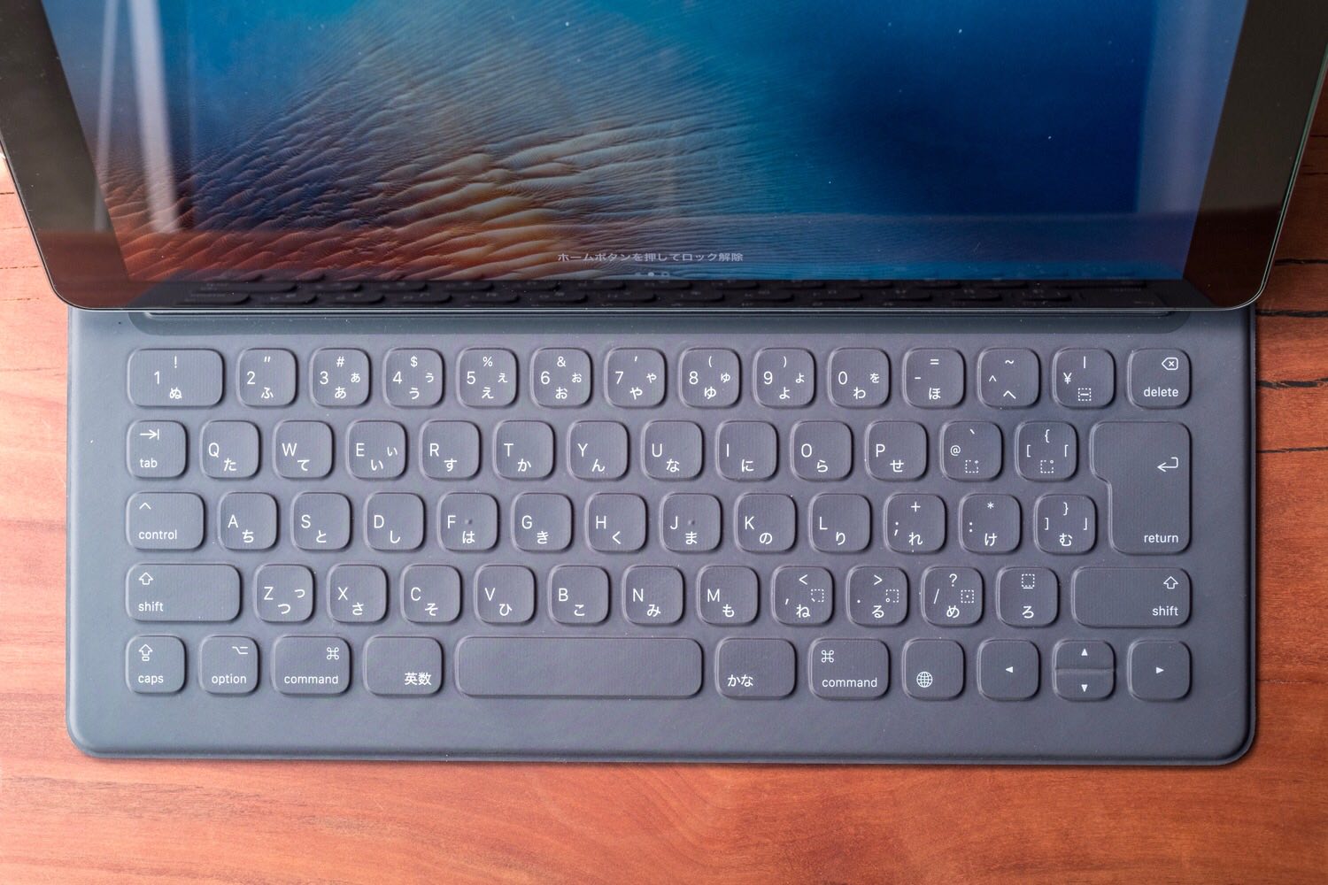 12.9インチiPad Proに合わせて使っているキーボードはJIS配列の純正Smart Keyboard。広々としたキーピッチ、打鍵感のあるキーストロークで個人的にはかなり好きなキーボードです。