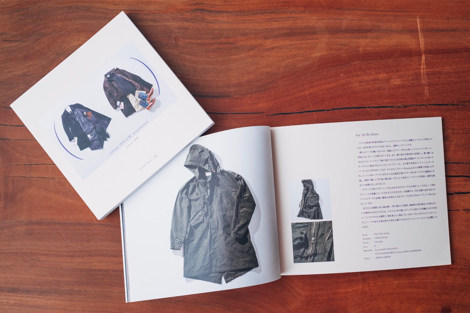 デザイナーの服作りに対する並々ならぬこだわりが垣間見えるのが、cantateのブランドカタログ。各商品1つに対して1ページ丸々を使って作り手のこだわりが詰め込まれています。