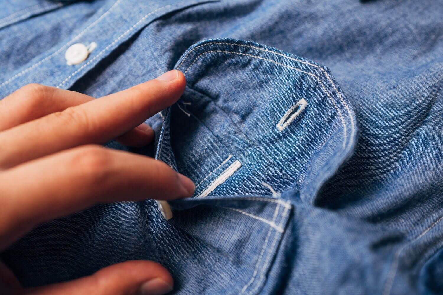 生地以外にも随所にこだわりが詰め込まれたこのシャンブレーシャツ。その一部をご紹介します。