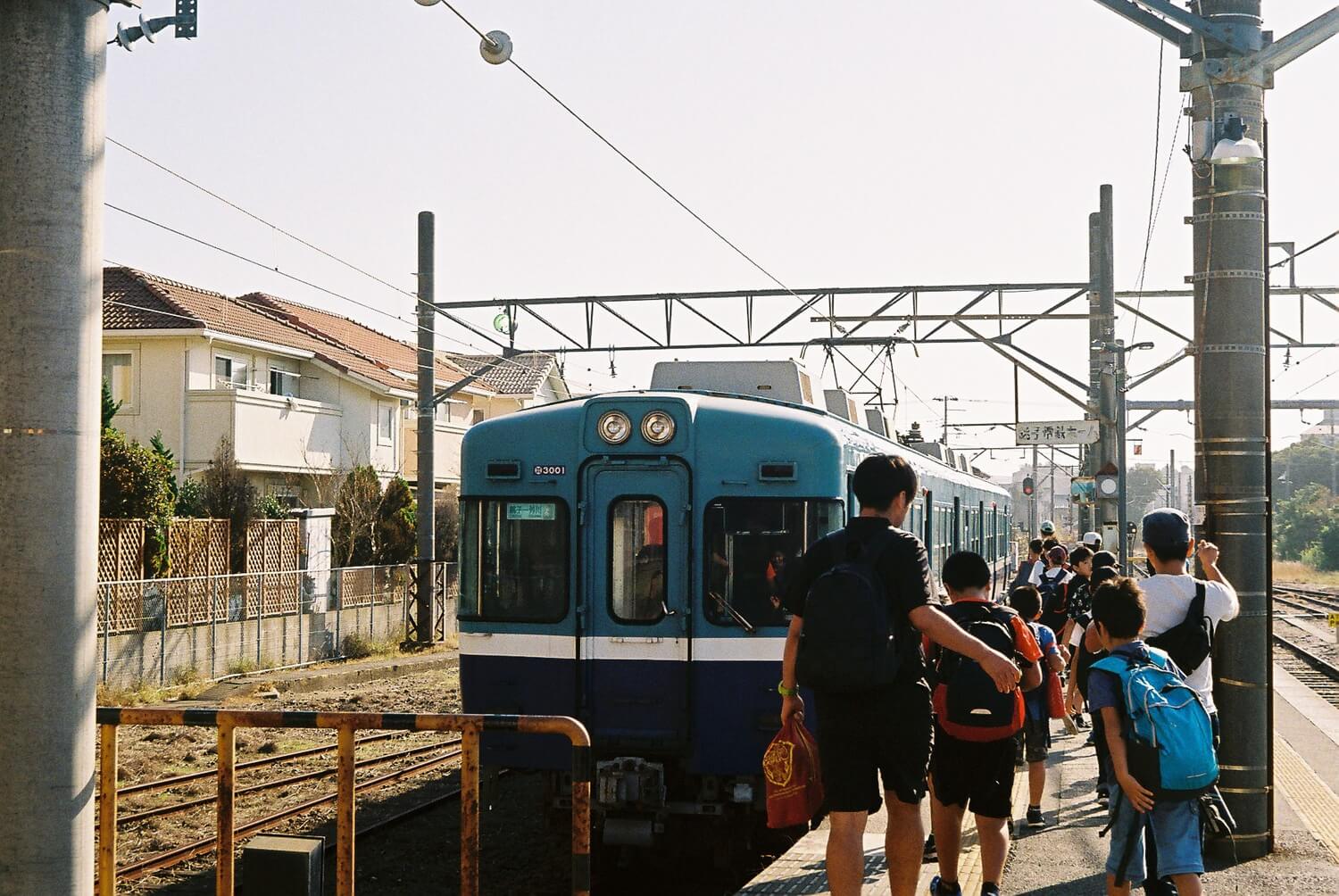 JR成田線の終点・銚子駅に着いたら、ここからは銚子電鉄というローカル線に乗り換え。ブルーの電車が爽やかでおしゃれ。