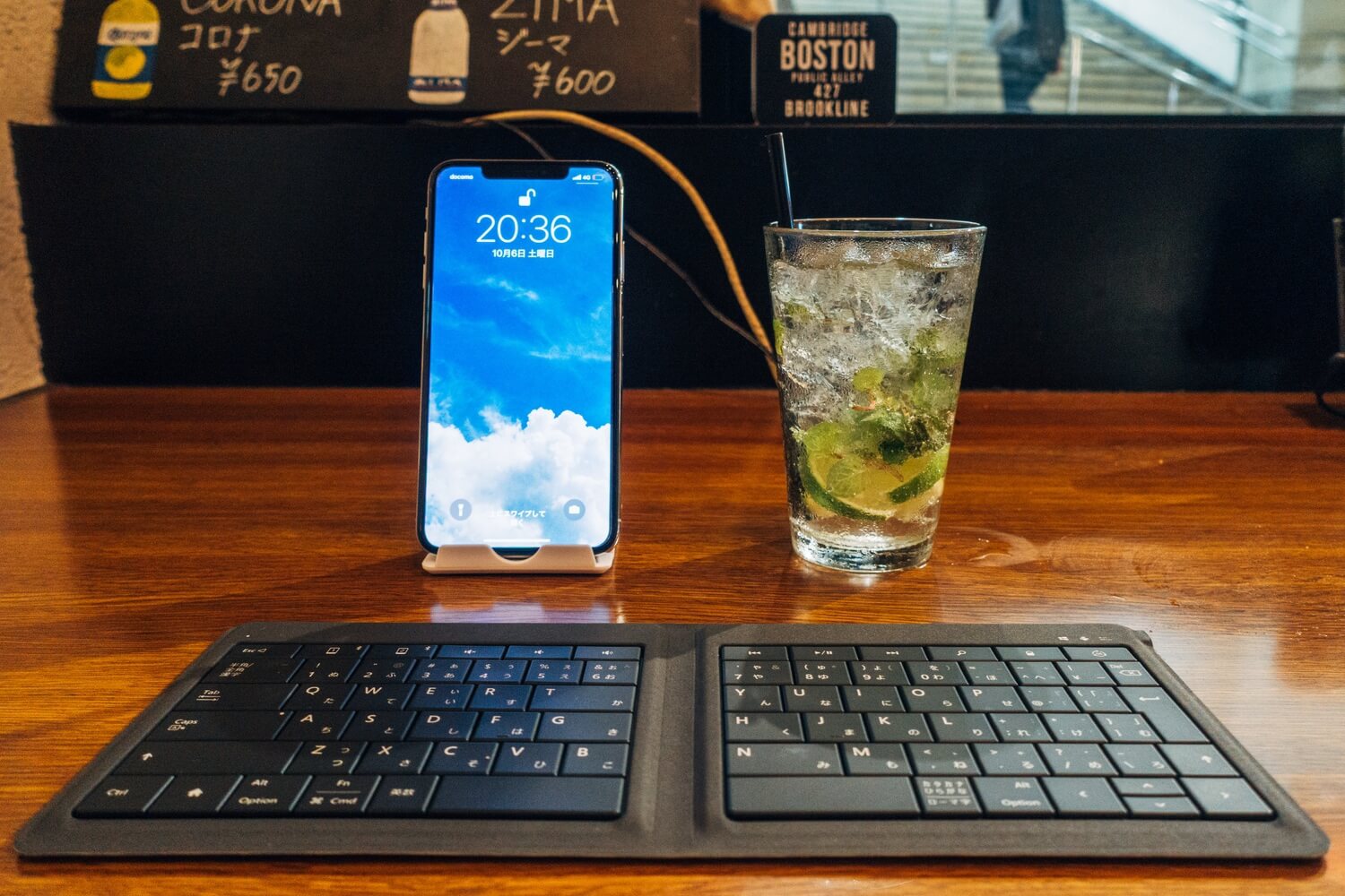 新しく買ったiPhone XS Maxと折りたたみ式のキーボードで、執筆途中の下書きをのんびり進めます。