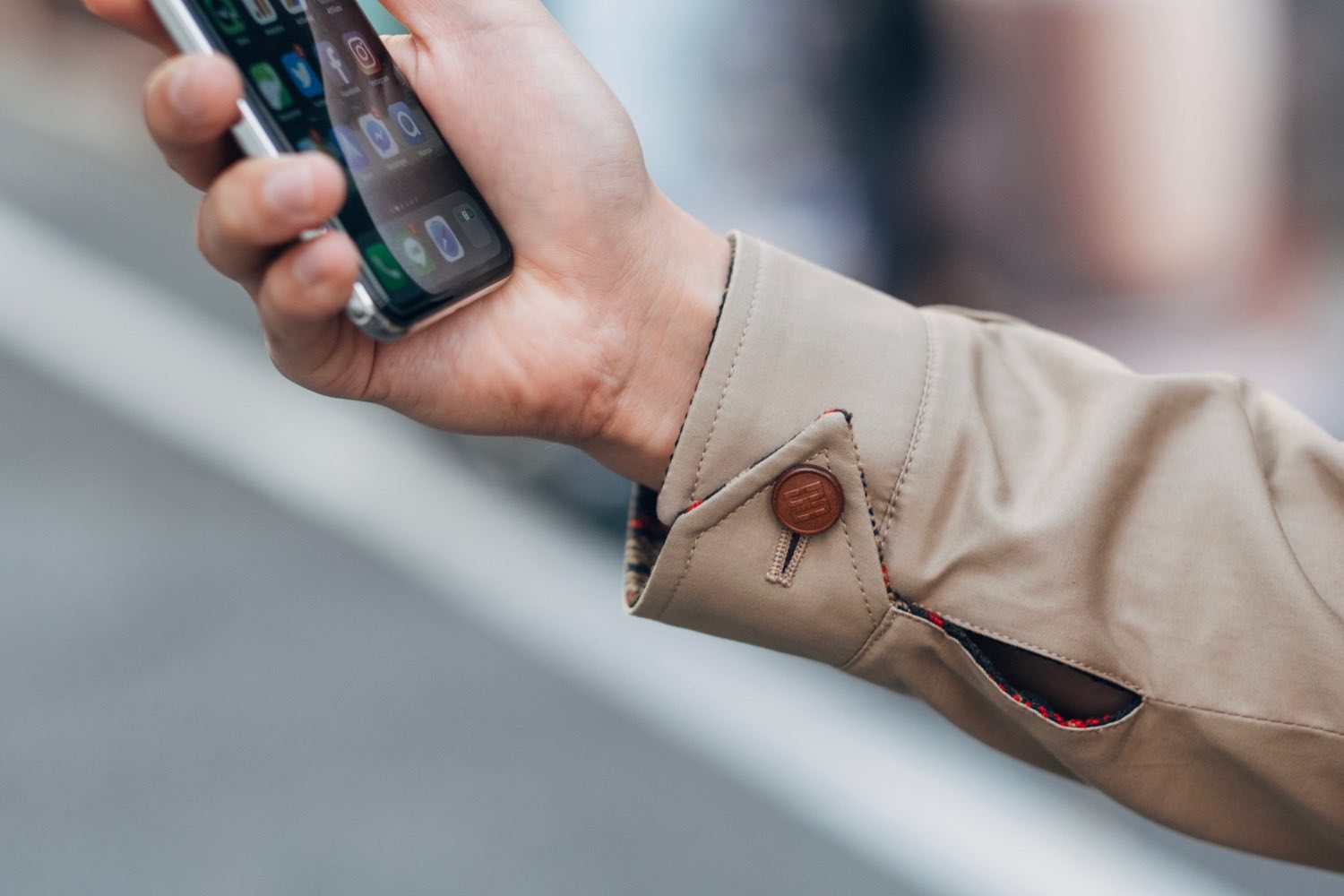 ボタンや袖口など各所に配されたボタンは全てロゴ入りのオリジナルウッドボタン。ちらりと見える木製のボタンが全体に重厚感をプラスしています。