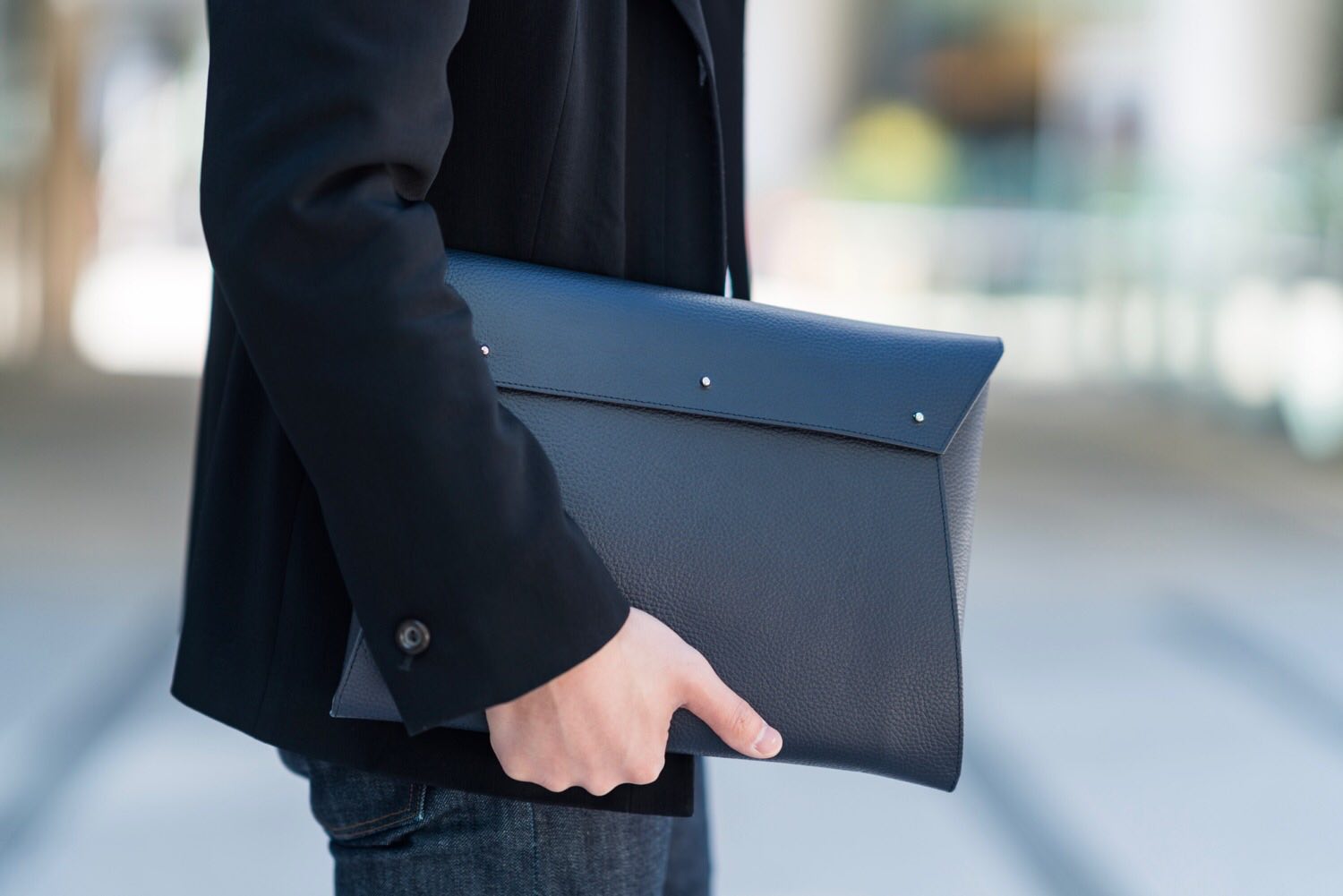 封筒をイメージソースにしたミニマルで洗練されたクラッチバッグは、直線的で構成されながらも丸みを帯びたフォルム。シンプルなので使うシーンを選ばず、ユニセックスで男女ともに使えるデザインです。