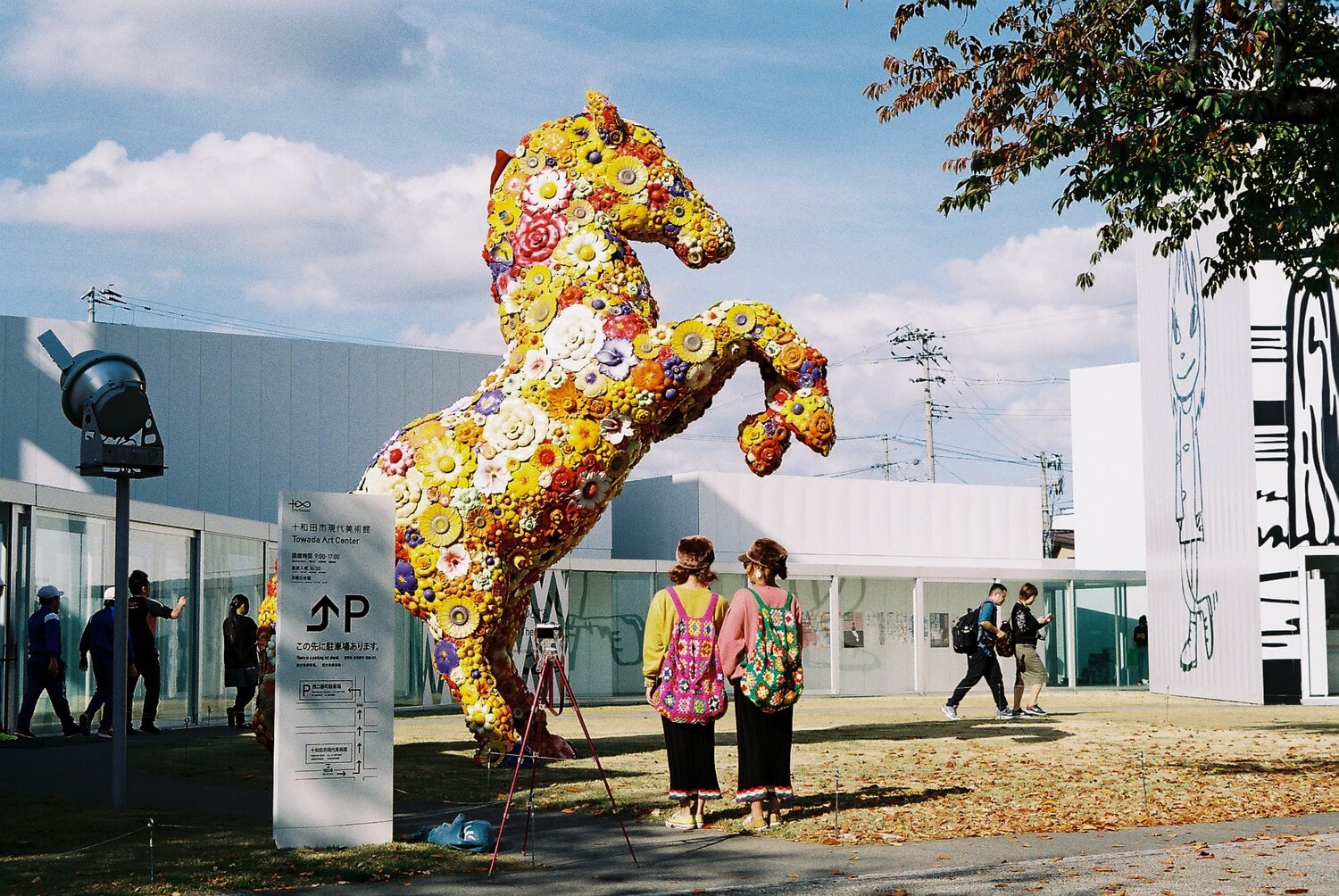 青森最終日は市内にある十和田市現代美術館へ。館内だけでなく街中にアート作品が点在し、散歩しながらも楽しめます。澄んだ秋晴れの空や色づき始める木々もアートの1つのよう。青森最後のフィルムはFUJIFILM 業務用100で。