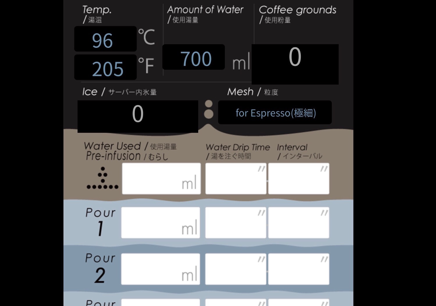 対して「My Recipes」は抽出におけるあらゆる項目を細かく設定できる、コーヒーに強いこだわりを持つ人のためのモード。ドリップに関わるあらゆる設定を詳細に決めて登録することが可能です。具体的には下記のような項目を設定できます。