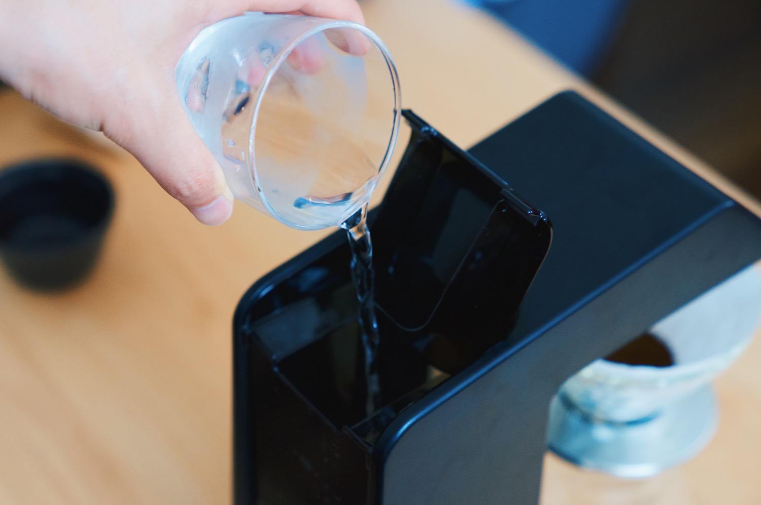 ここからはSMART7を使ってコーヒーを抽出していきます。まずは背面の水タンクに水を必要分注ぎます。