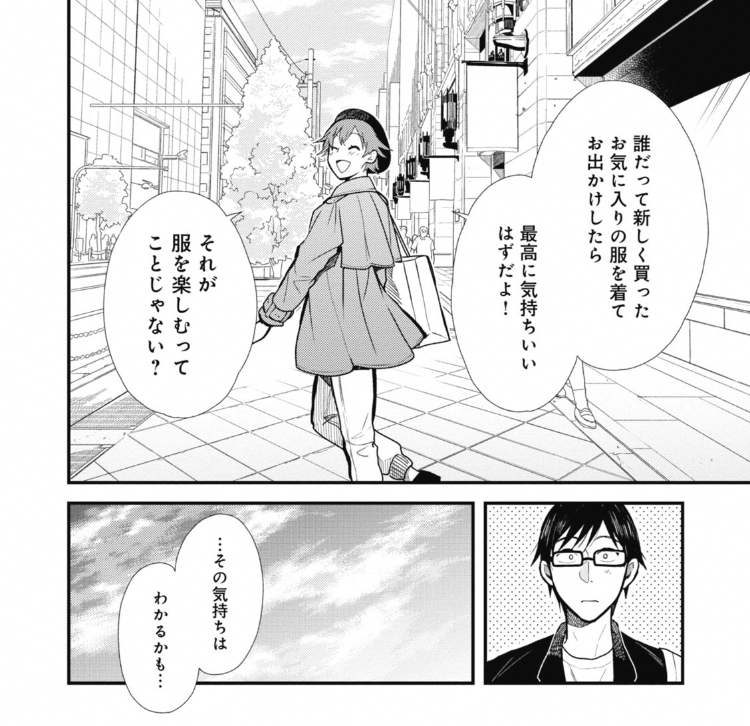 2巻では服趣味が行き過ぎて人を蔑んだりしてしまう過度なファッションアディクトの話なども出てきますが、本来ファッションはそれぞれ自由に楽しむものであるはずです。