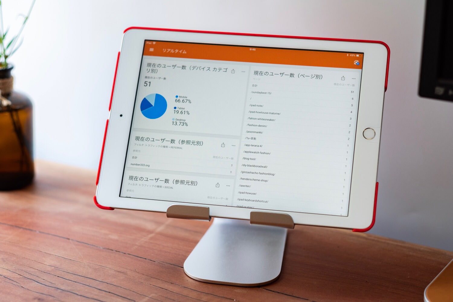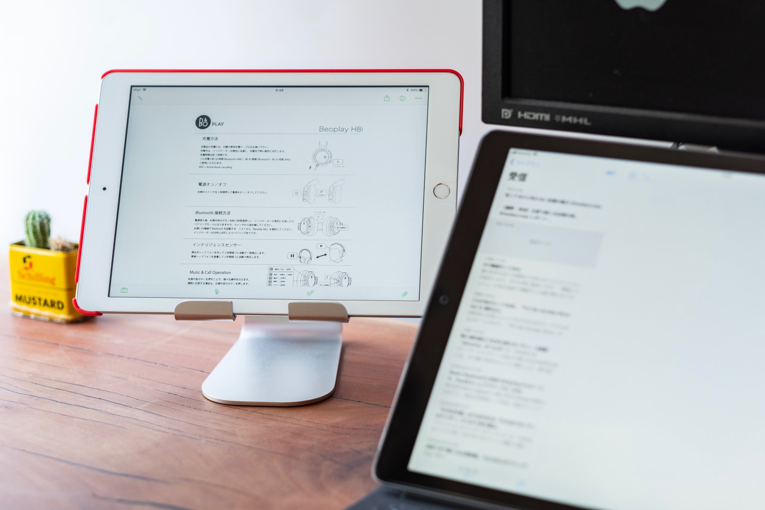 iPadは専用のスタンドを用意して常にデスク脇に設置。手元のメインコンピュータで作業をする際に、補助的な情報を常時表示させています。