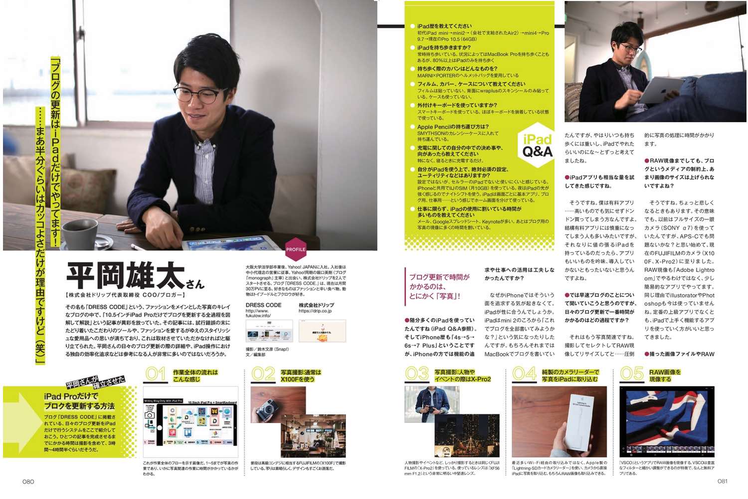今回は誌面内にて5ページにわたり掲載いただきました。iPadでブログを運営する具体的な方法や、iPadの活用法、これまでのiPad遍歴やiOS 11に望む改善点などをたっぷり語ってきました。