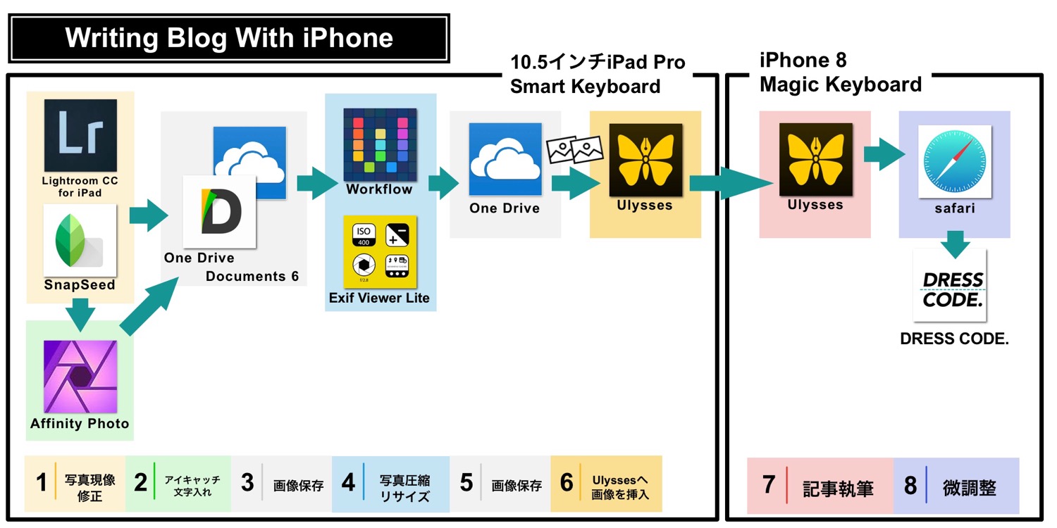ぼくがここで検討している作業とは、原稿執筆やブログの更新が中心。もともとぼくは今使っているiPhone 8でもブログを書く環境を整えています。
