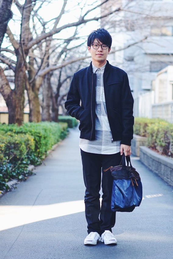 ぼくが気に入っていた組み合わせがMARNIのウールブルゾンとのコーディネート。アウターからはみ出す丈の長さが絶妙で、かつどちらも起毛感ある生地で相性も◎