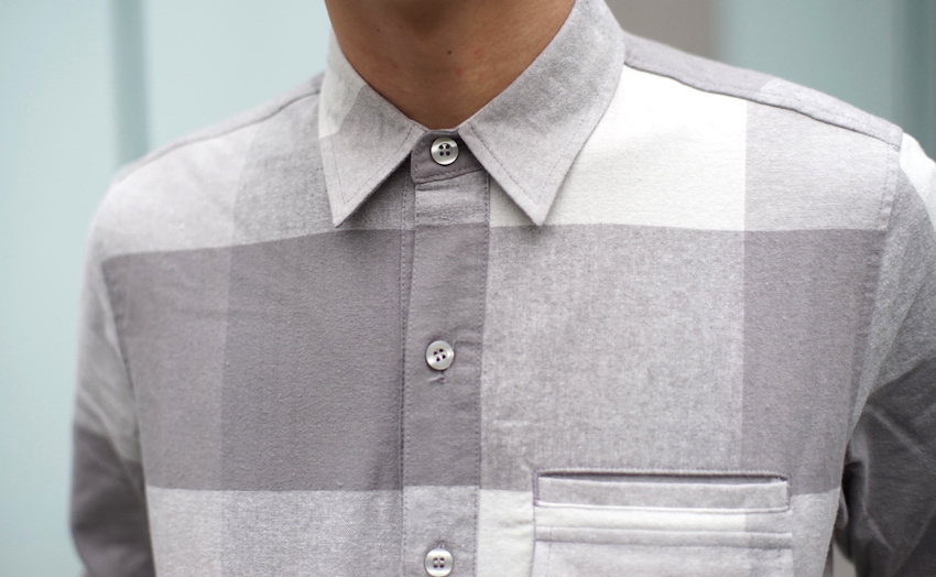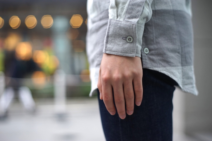 うっすらとやや起毛感あるコットン素材に、濃さが異なる4色のグレーがチェック柄となった優しげなシャツ。袖を通すとその肌触りがとても気持ち良い1枚です。