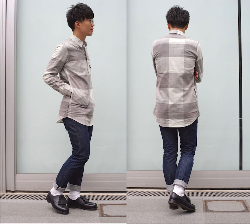 うっすらとやや起毛感あるコットン素材に、濃さが異なる4色のグレーがチェック柄となった優しげなシャツ。袖を通すとその肌触りがとても気持ち良い1枚です。
