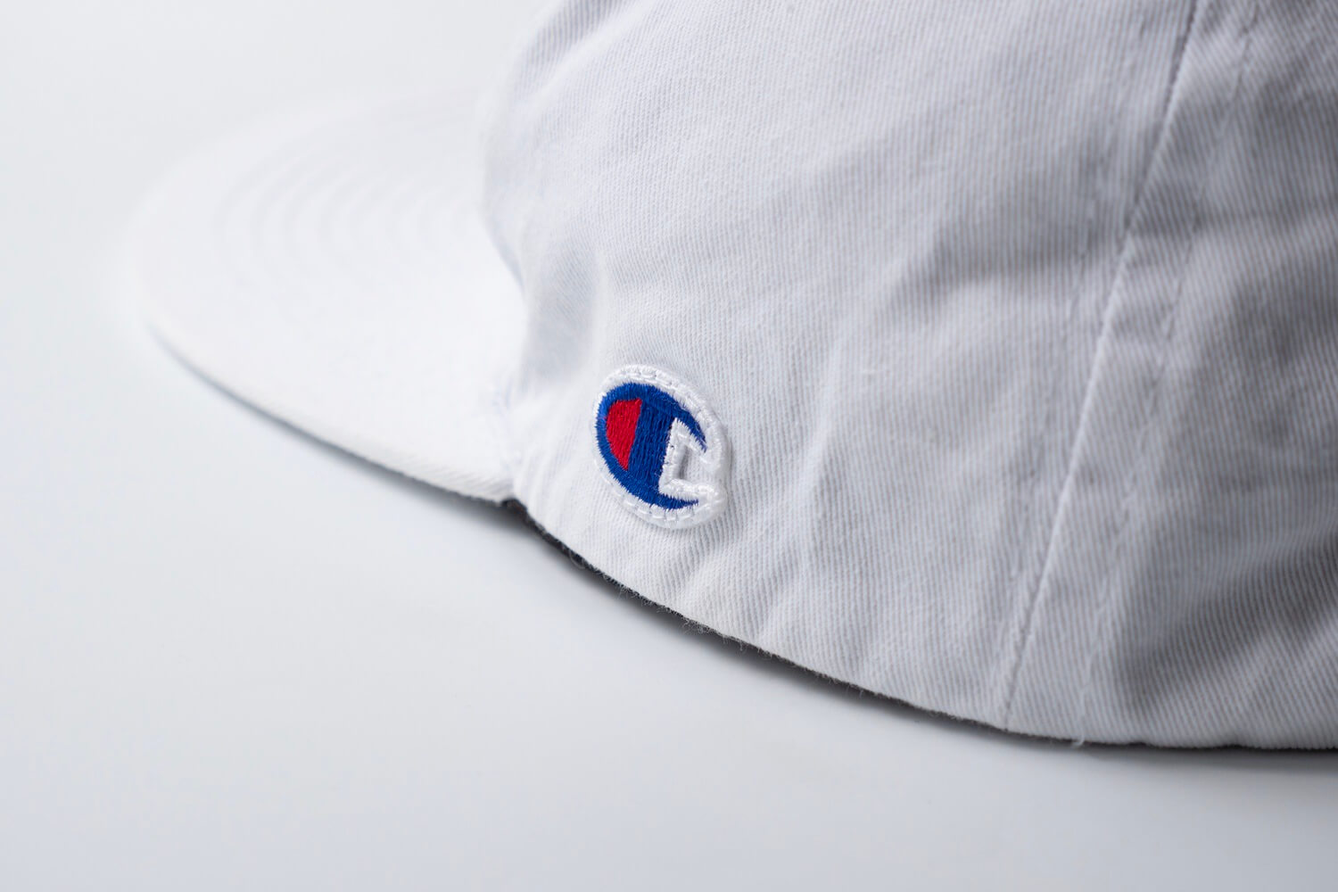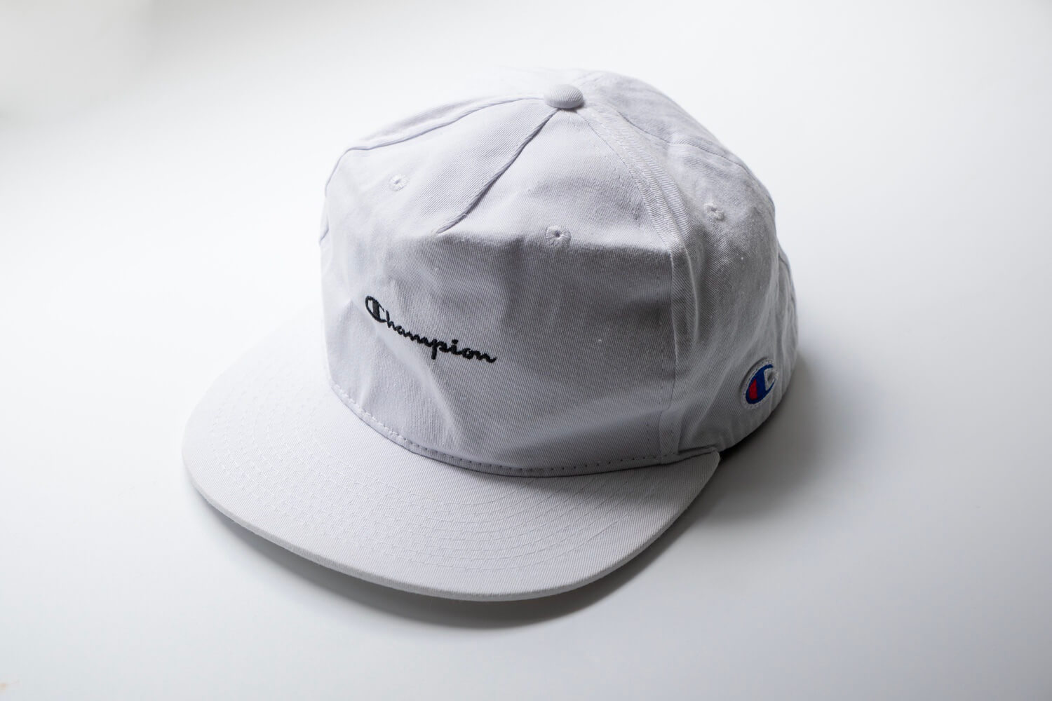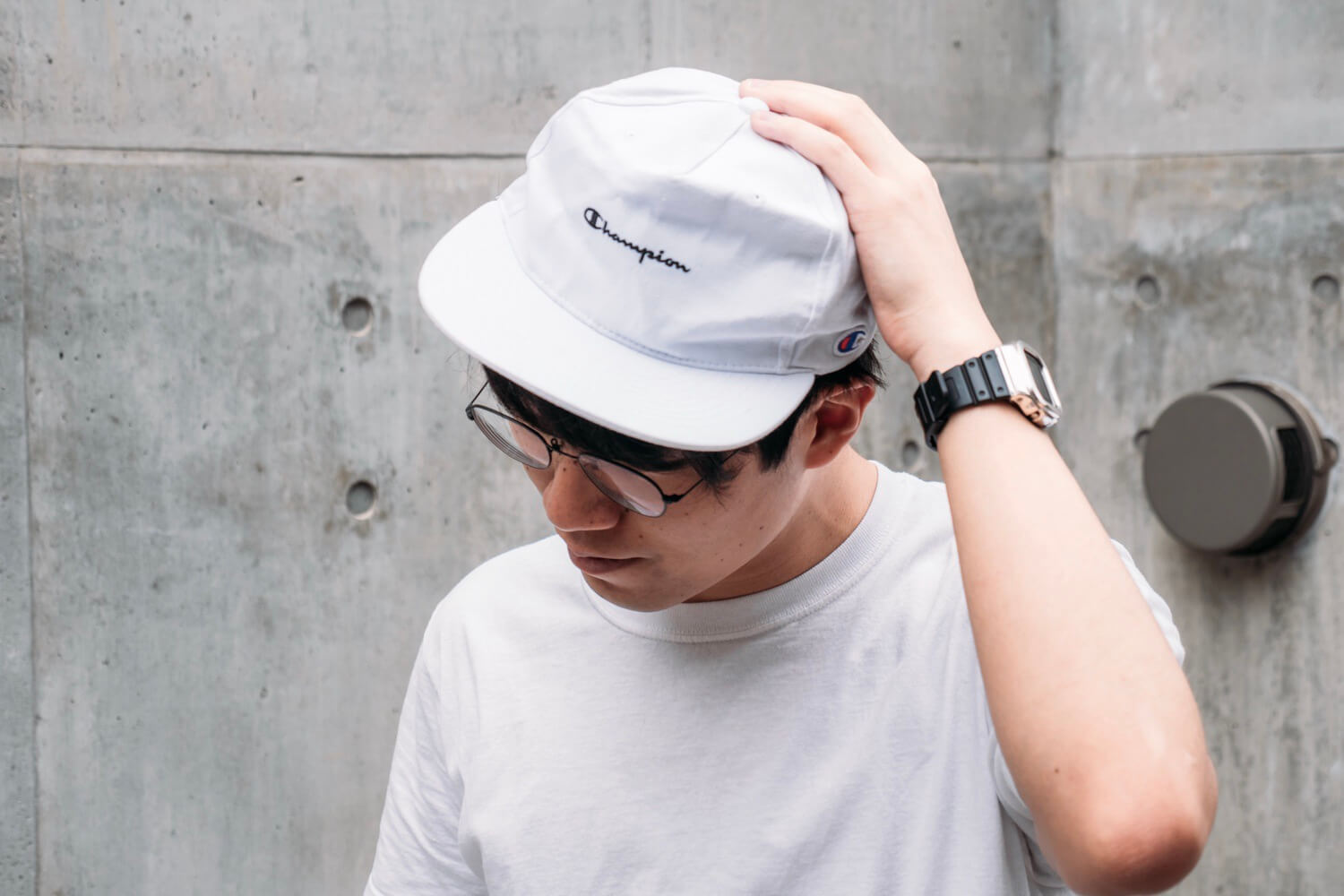スウェットやカットソーが定番のChampionですが、今回チョイスしたのはキャップ。全面ホワイトのクリーンな印象のキャップです。