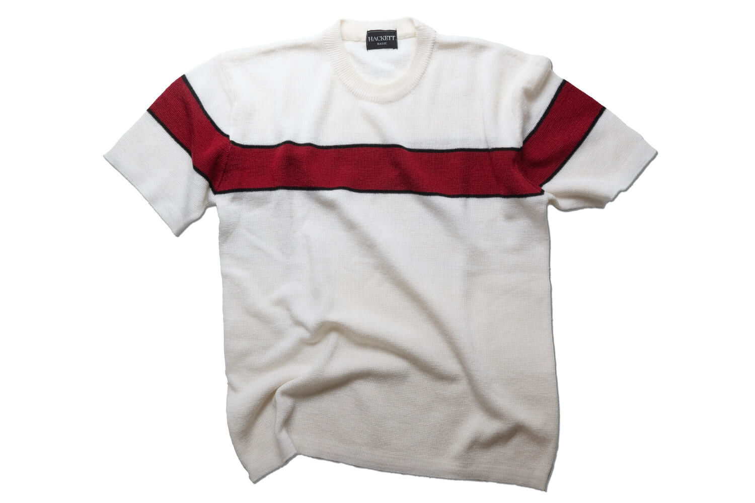 紹介するのは1983年に英国で始まった老舗ブランド「HACKETT」の半袖サマーニット。こちらはブランド当初に作られた80sの1着です。