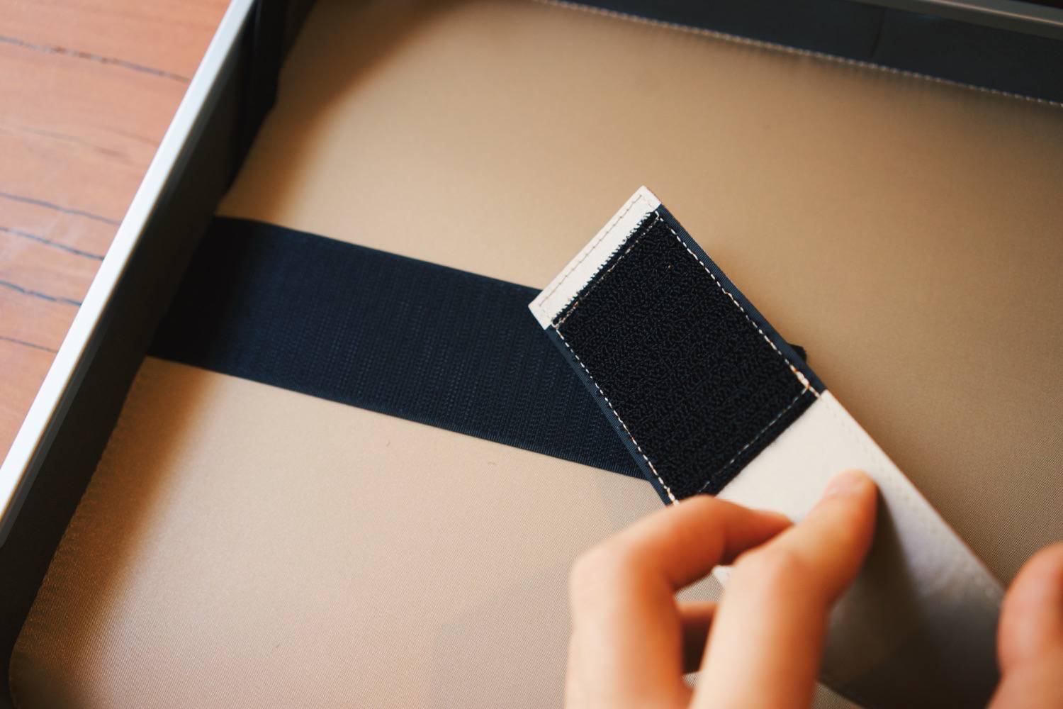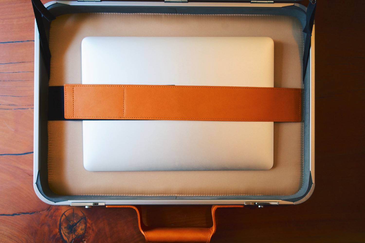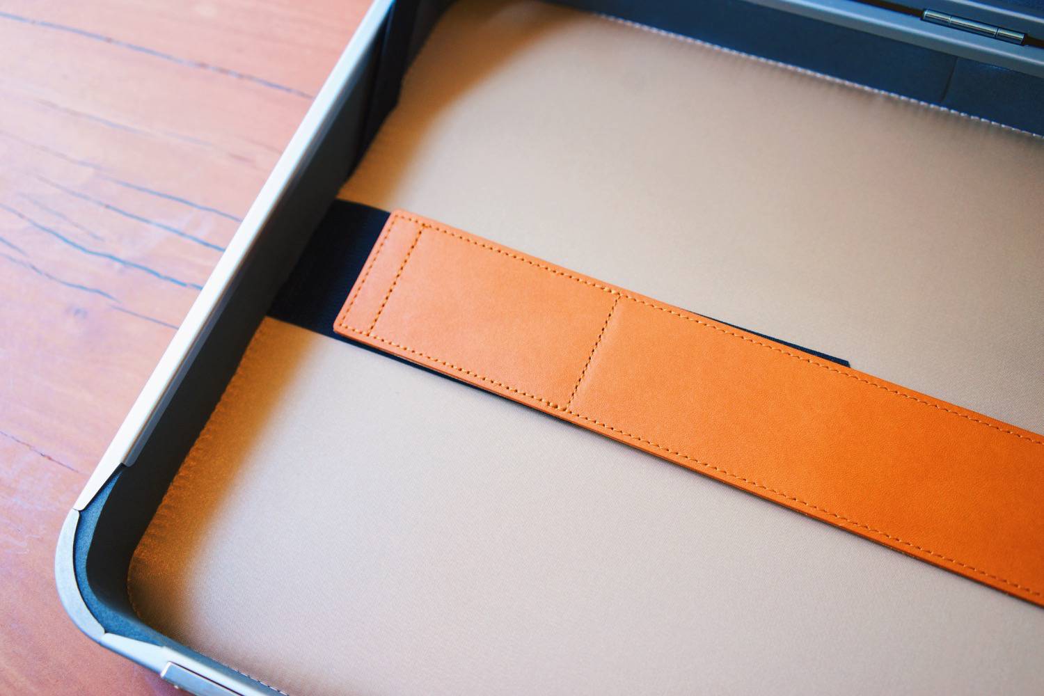本革バンドの固定力が意外と強く、小さいサイズのPCでも持ち運び中にPCが動き回ることはありませんでした。