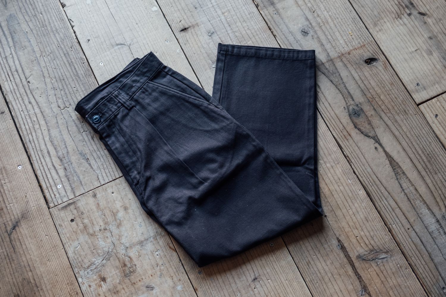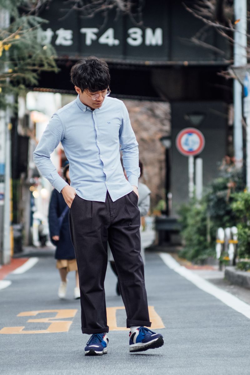 フルレングスだとちょっと野暮ったかったので、ソックスがチラ見えするくらいまでロールアップ。このバランスが好きです。