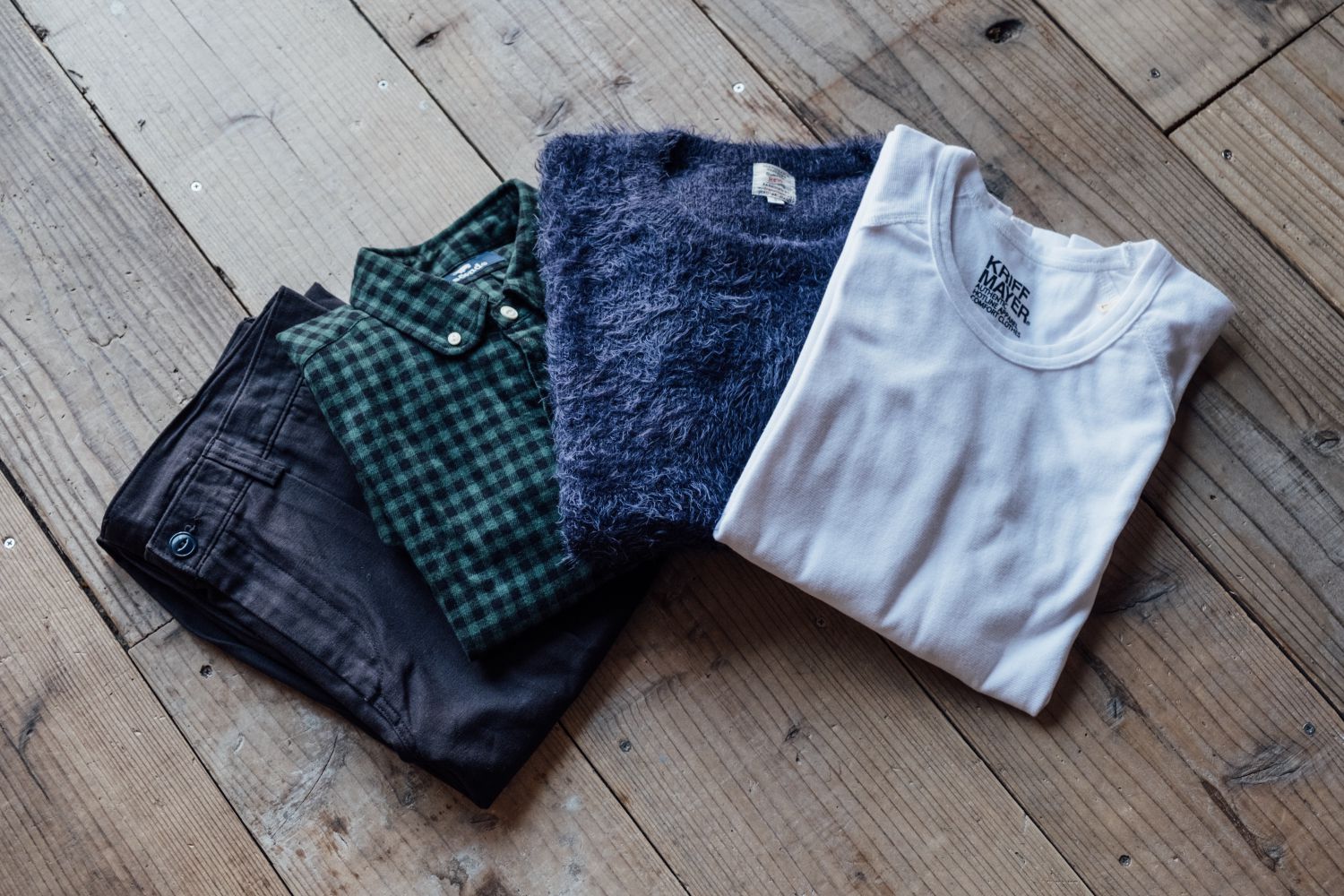 今回届いたのは上の4アイテム。前回は届いた服のヨレが少し気になりましたが、今回の服は全て綺麗に畳まれた状態で届きました。気持ち良い。