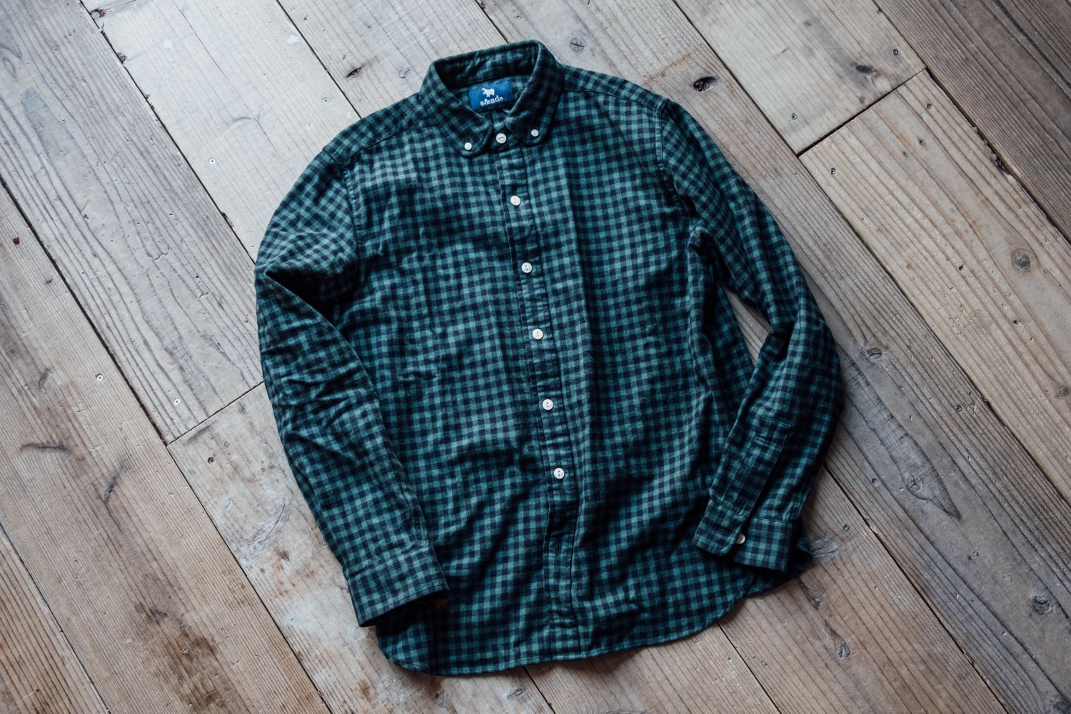 次はグリーンのチェックネルシャツ。丸襟タイプの一見なんの変哲も無いシャツですが、後述するようにこれが今回1番のお気に入りになりました。