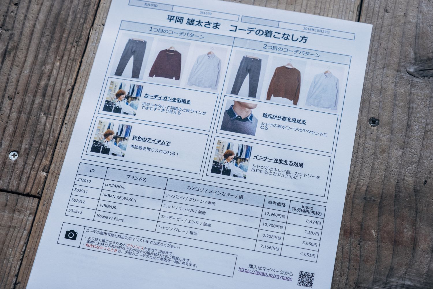 自分の要望に対してなぜそのコーディネートを選んだのか、他にはどういうものと組み合わせられるか等を丁寧に説明してくれます。WEARも見てくれて、ぼくが持ってなさそうな色味を選んでくれたとのことです。