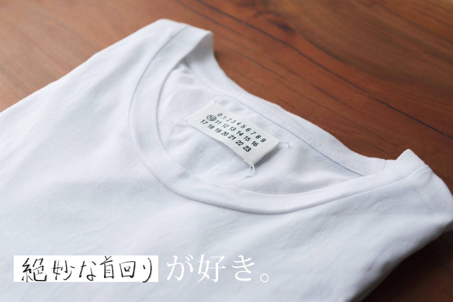 これまでファストファッションからハイブランドまで様々な白Tを着ましたが、個人的にこのMaison MargielaのTシャツが断トツで気に入っています。そしてそれはこの絶妙な首回りによるところが大きいです。