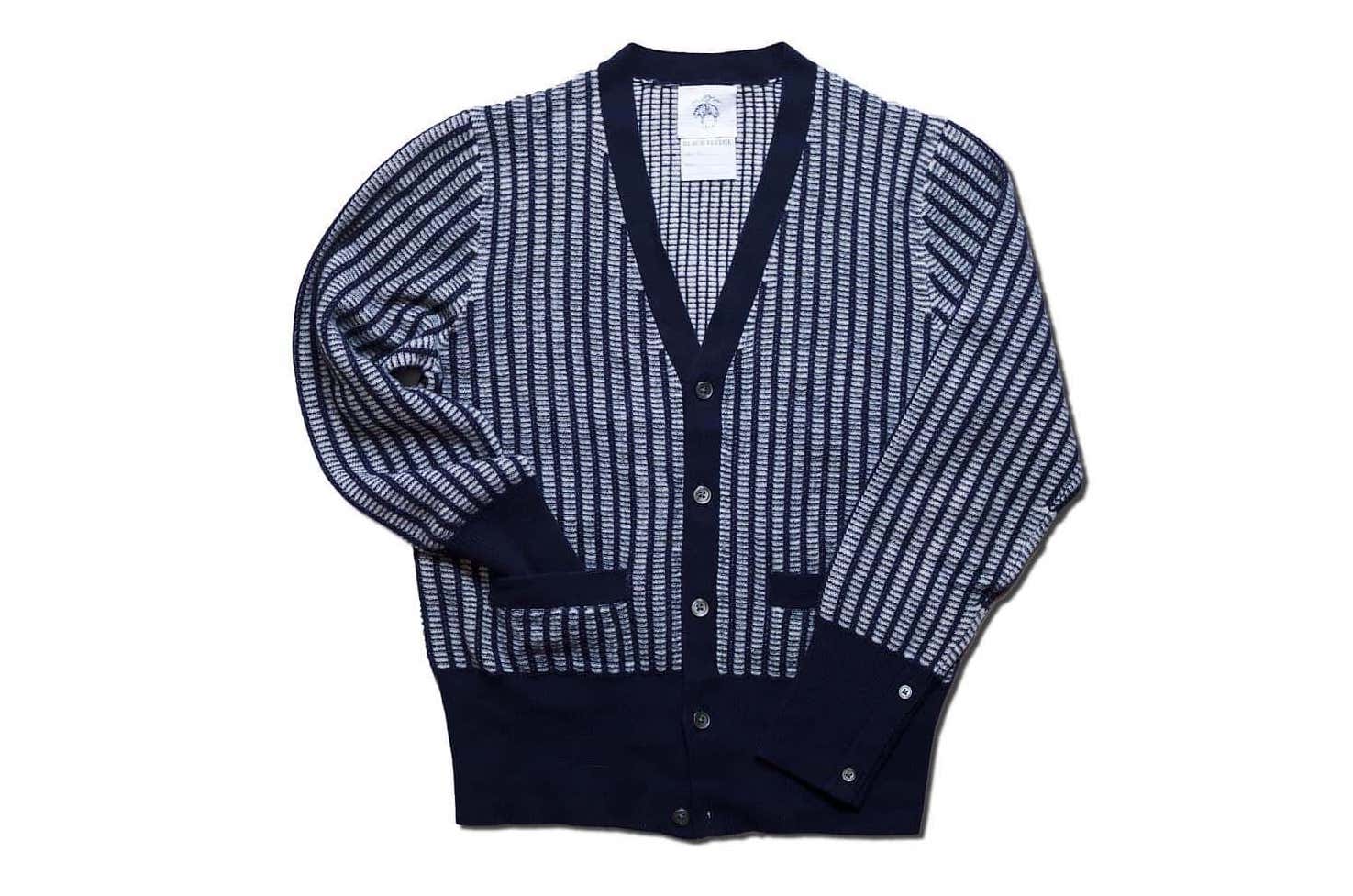 BLACK FLEECEの総柄ニットカーディガンは、袖口やフロントボタンの裏に貼られたグログランテープが好き。