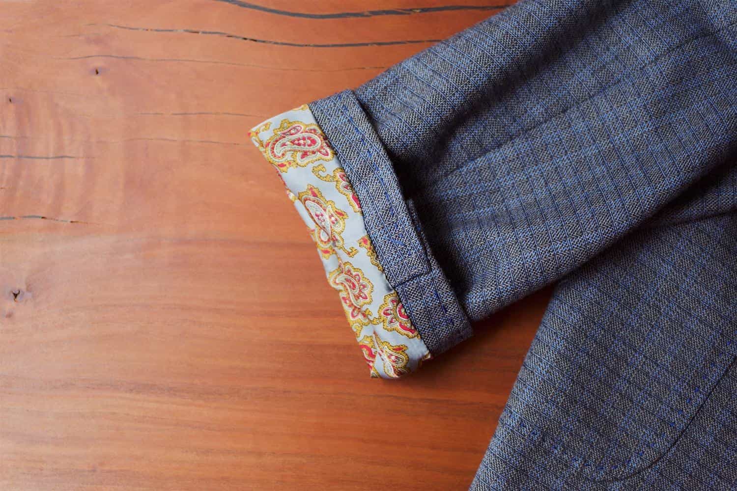 襟の他にも袖をめくるとペイズリー柄の裏地が出てきたりと、見えない裏地にも遊び心をたっぷり詰め込んでいるのはさすがギャルソン。