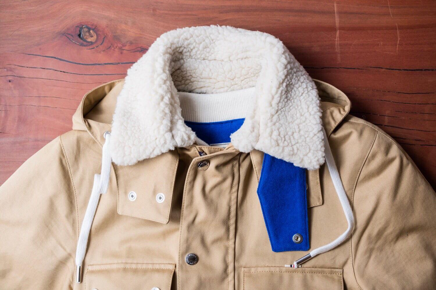 今年購入したアウターがMAISON KITSUNEの中綿サファリジャケット。淡いベージュにボアカラー、発色の良いブルーのチンストラップがアクセントになったモダンなデザイン。