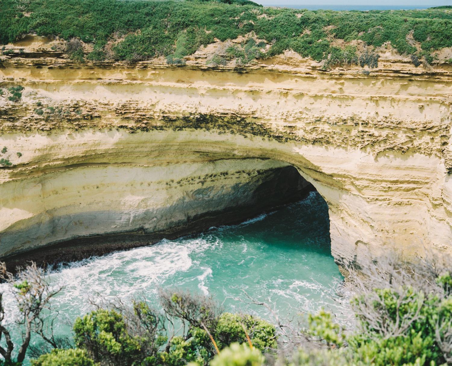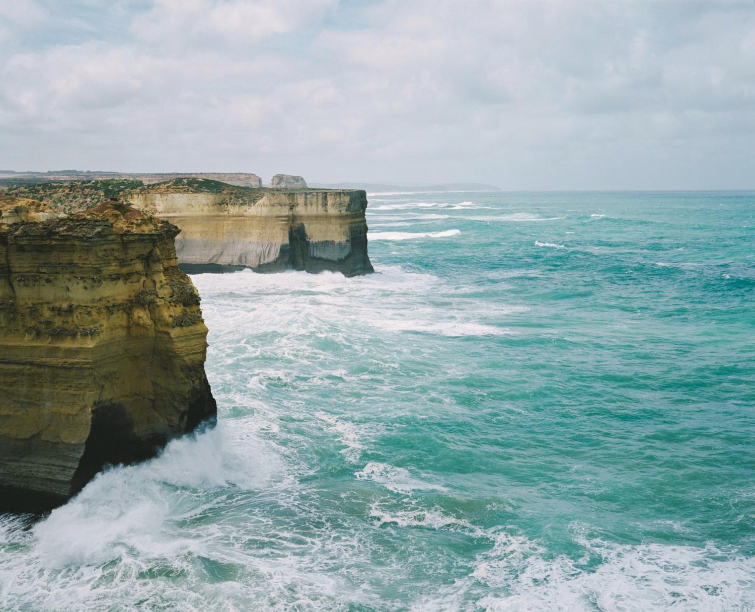 グレートオーシャンロードの景色はとにかくスケールが大きく雄大。大地が何年ものあいだ波しぶきにさらされ削られることによって、切り立った崖ができています。