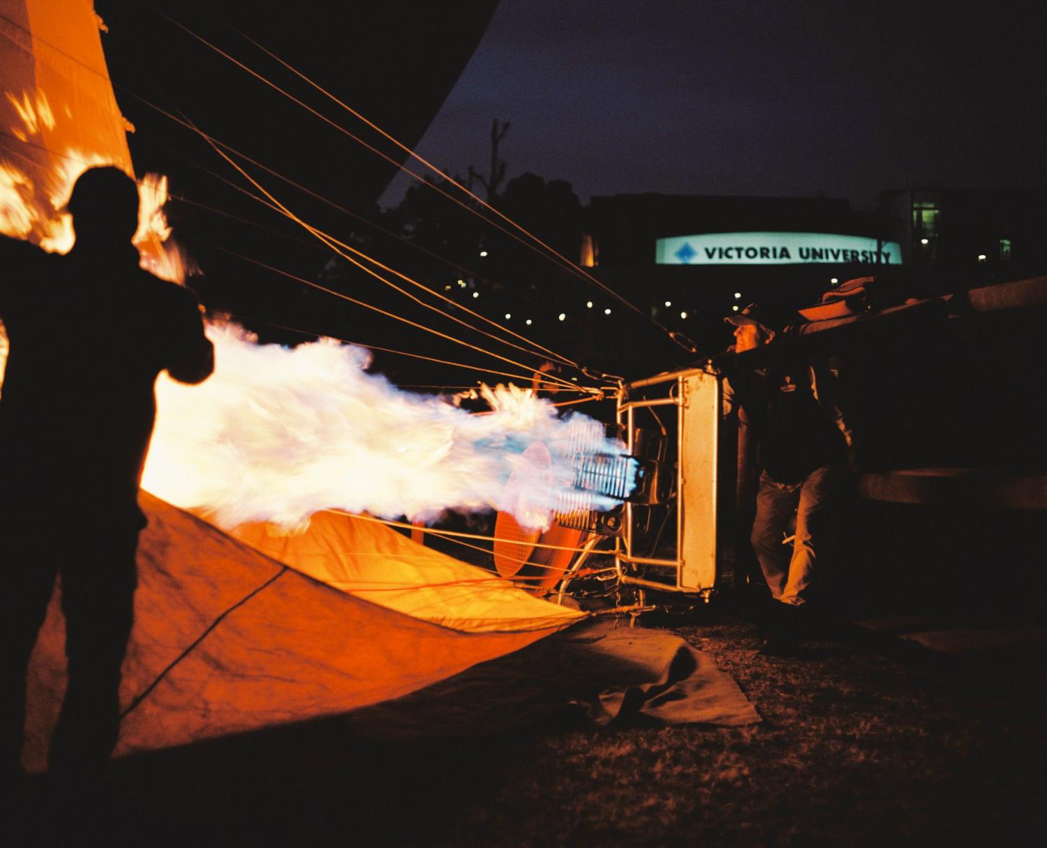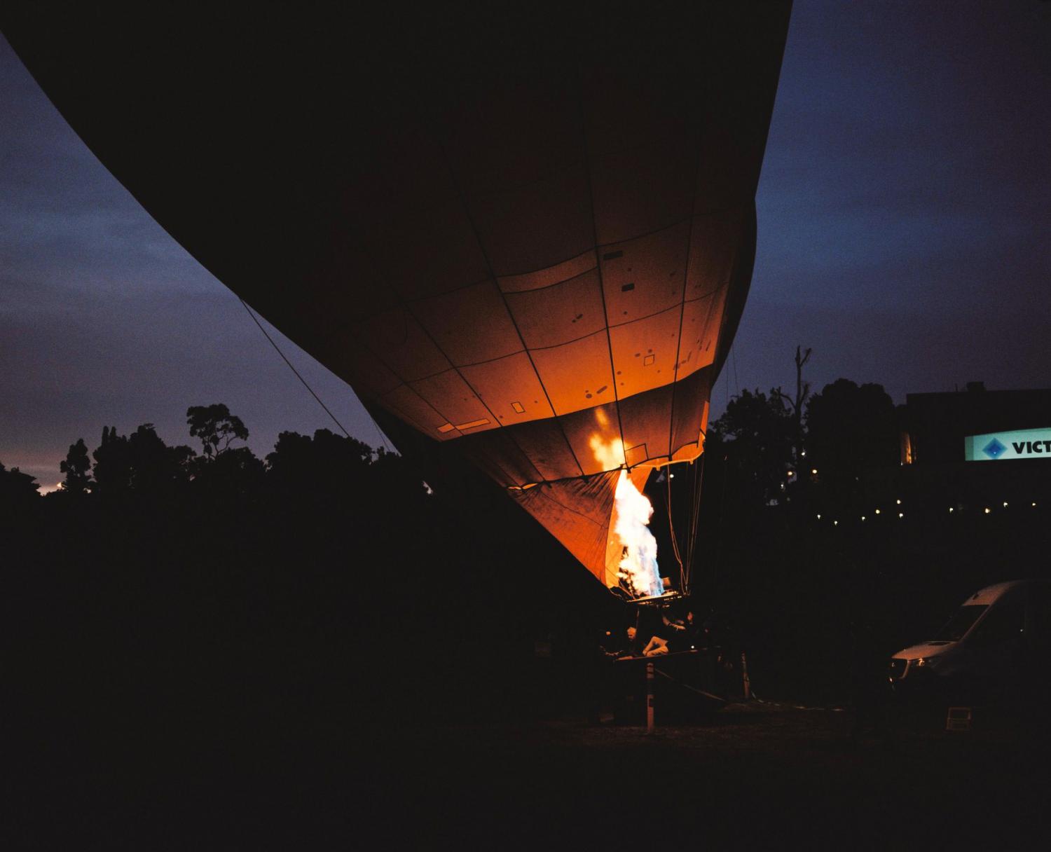 ヘリコプターに続いて人生で初めて気球にも乗らせてもらいました。ここメルボルンは気球文化の最先端であり、市街地の上空を気球で飛べる世界でも限られた都市の1つだそう。まだ日が昇らない早朝から送風機と火炎放射器でバルーンの中を熱気で満たし、メルボルンの朝焼けの中へと優雅に飛び立ちます。