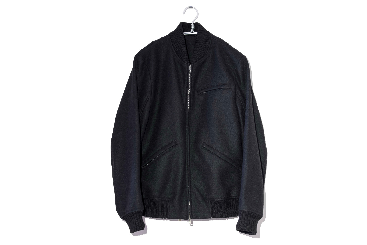 美しいシルエットの服と素材の良さが際立つ服には、過度なデザインは必要ありません。このブルゾンもほとんど装飾的要素はありません。ジップ部分も全て比翼仕立てになっていて、金具が露わにならないようになっています。