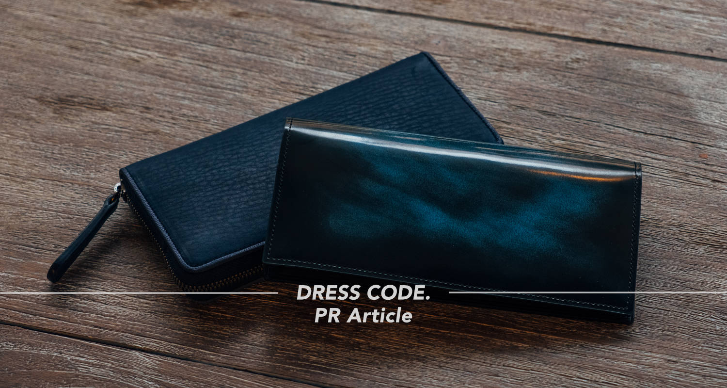 写真左側はぼくも先日直接お店に足を運んだ、Bluestoneのスクモレザーを使ったラウンドジップの長財布。徳島産の天然染料「すくも」で藍色に染め上げたレザーを使った贅沢な逸品。