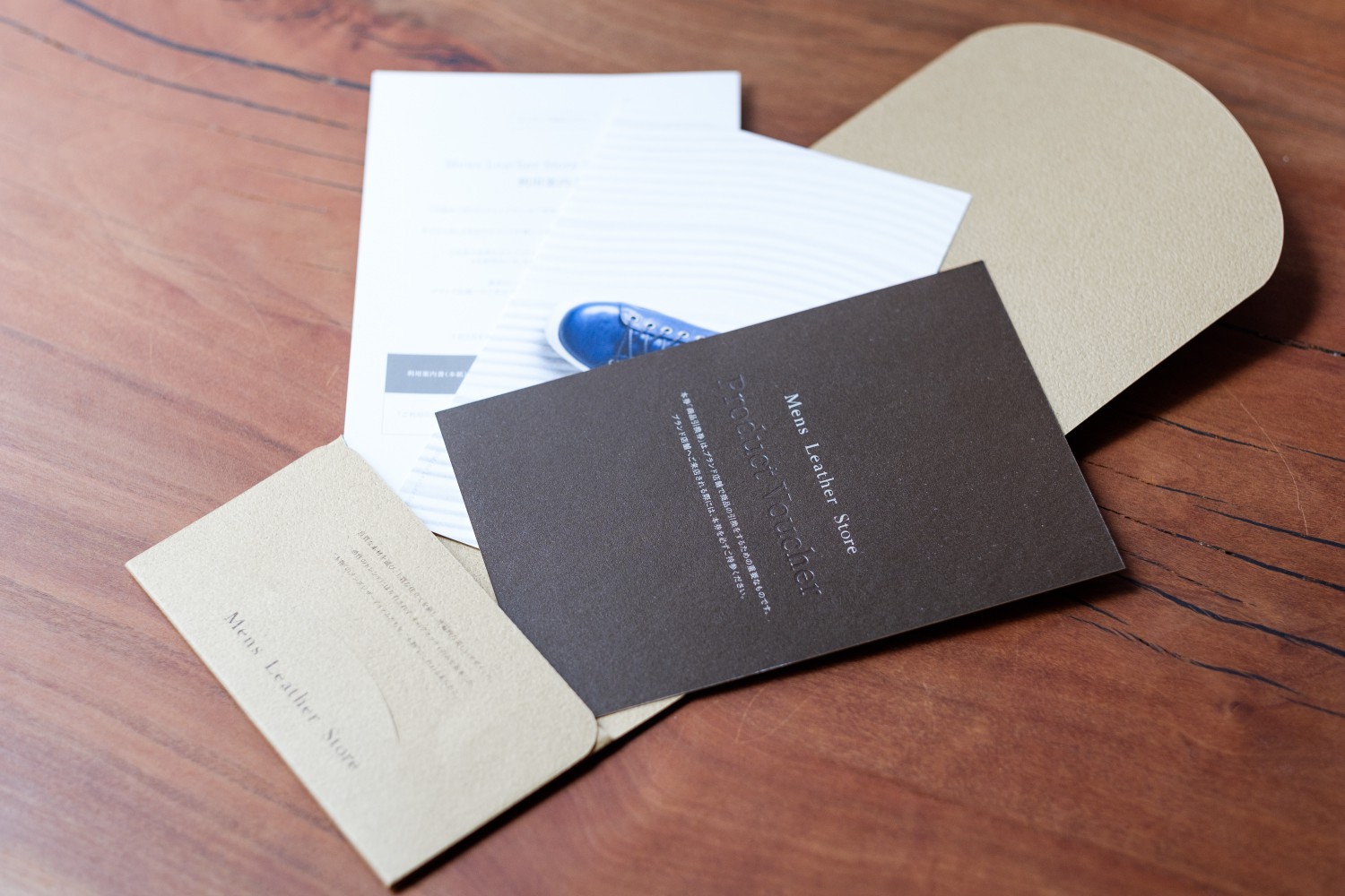 封筒の中には商品引換券・利用案内書・記念ポストカードの3点が封入されています。