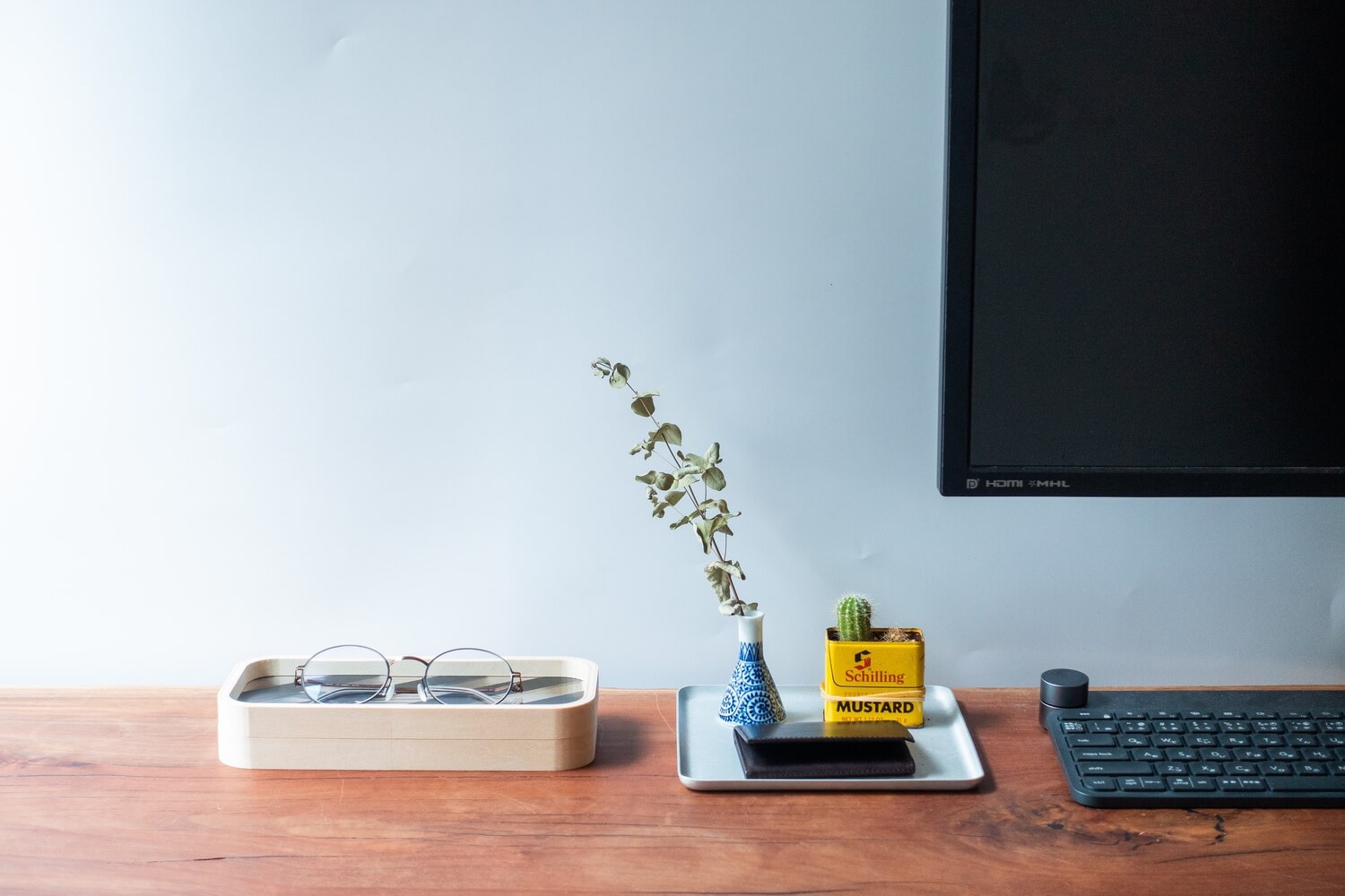 アクリル×木の異素材コンビ。MOHEIMのPEN TRAYでデスクの上をおしゃれに整える。