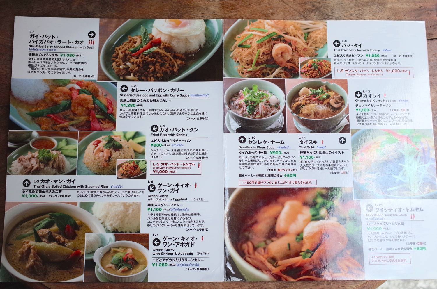 こちらはランチメニュー。ガパオライスからタイカレー、トムヤムクンまでタイ料理のメジャーどころは大体網羅。