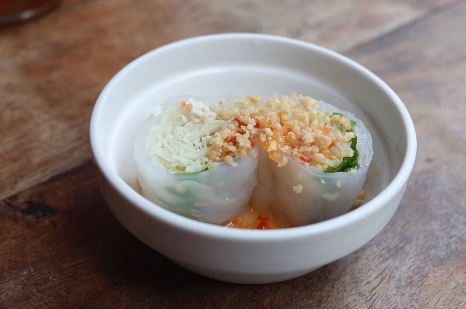 ランチは無料で生春巻きが付いてきます。事前に仕込んでいるみたく、着席するとすぐに持ってきてくれるので注文の料理が運ばれてくるまではこれを食べて待っていましょう。